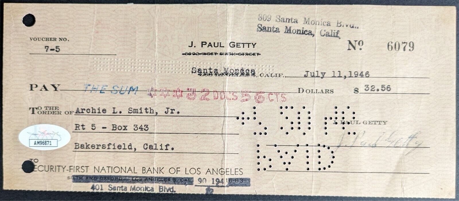 - 1946 J. Paul Getty Signed Personal Cheque