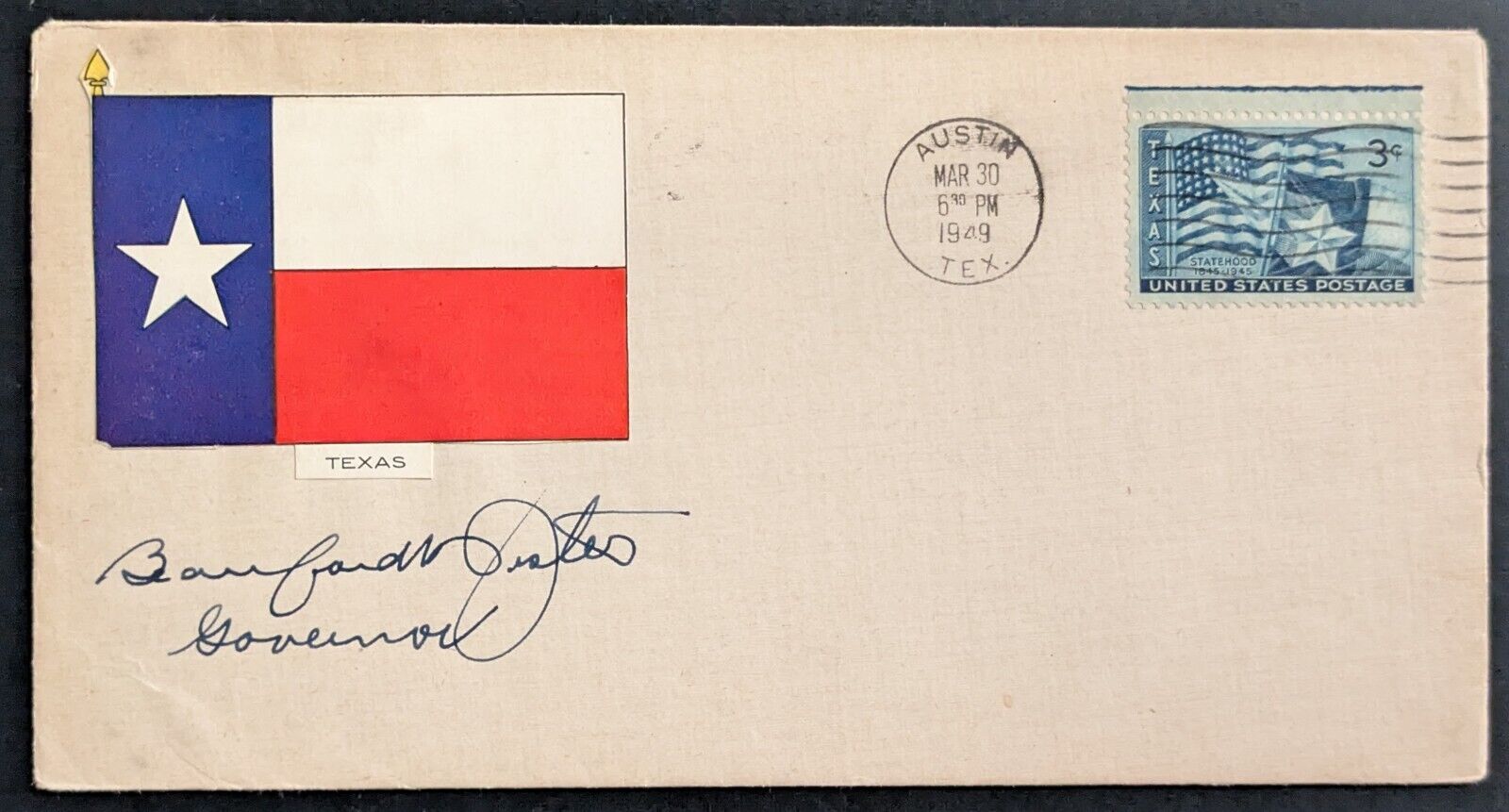 - 1949 signed autographed Beauford Jester Governor of Texas envelope