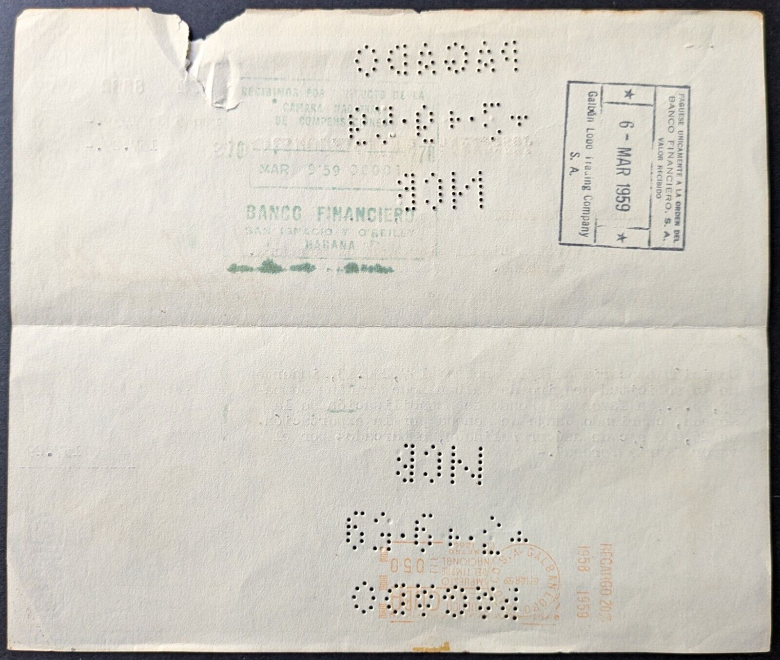 1959 Cuban Cheque Written On First National City Bank Of New York City In Havana