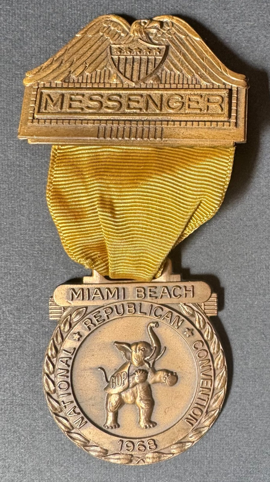 • 1968 Republican National Convention Messenger Credential Badge United States