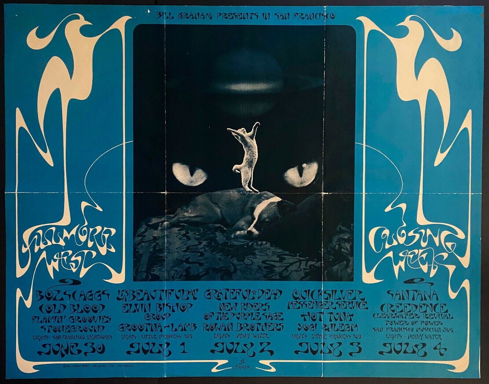 - Bill Graham presents Boz Scaggs, Credence, Grateful Dead, Flamin' Groovies, Hot Tuna, Quicksilver, Santana, Elvin Bishop, New Riders, Rowan Bros, Tower of Power, Stoneground. June 30th - July 4th, 1971 -- the last week of Graham's shows at Fillmore West