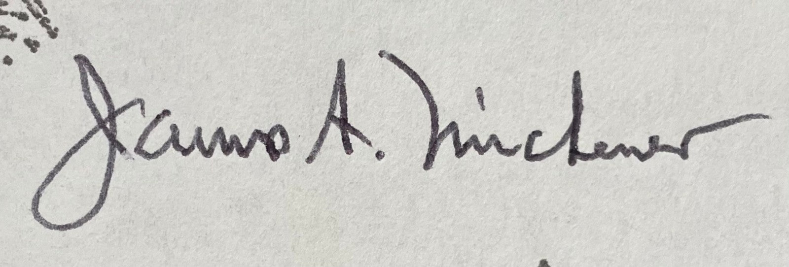 - Very good condition; notable creasing throughout, staining on the bottom of many pages, neat writing in pen on the first page, autograph presents well with no smudging, fading or bleeding