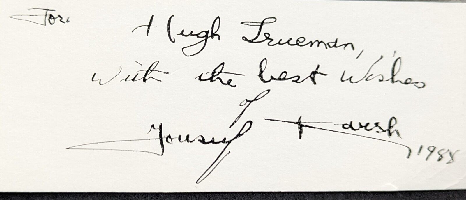 - Autograph is personalized: "To Huge Trueman, with the best wishes..."