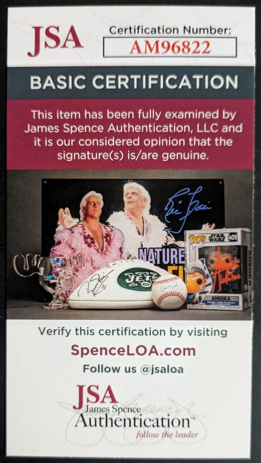 - Certificate of Authenticity provided by JSA - Certification #AM96822