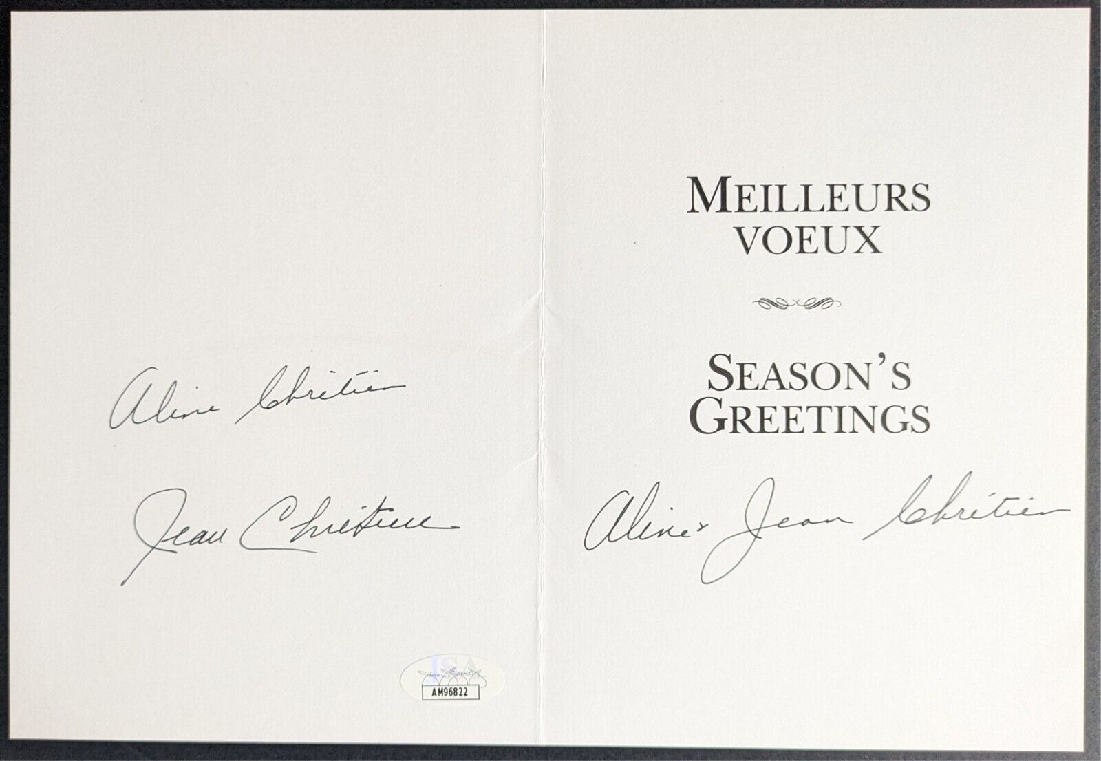 - 1998 Prime Minister of Canada Jean and Aline Chretien Signed Christmas Card
