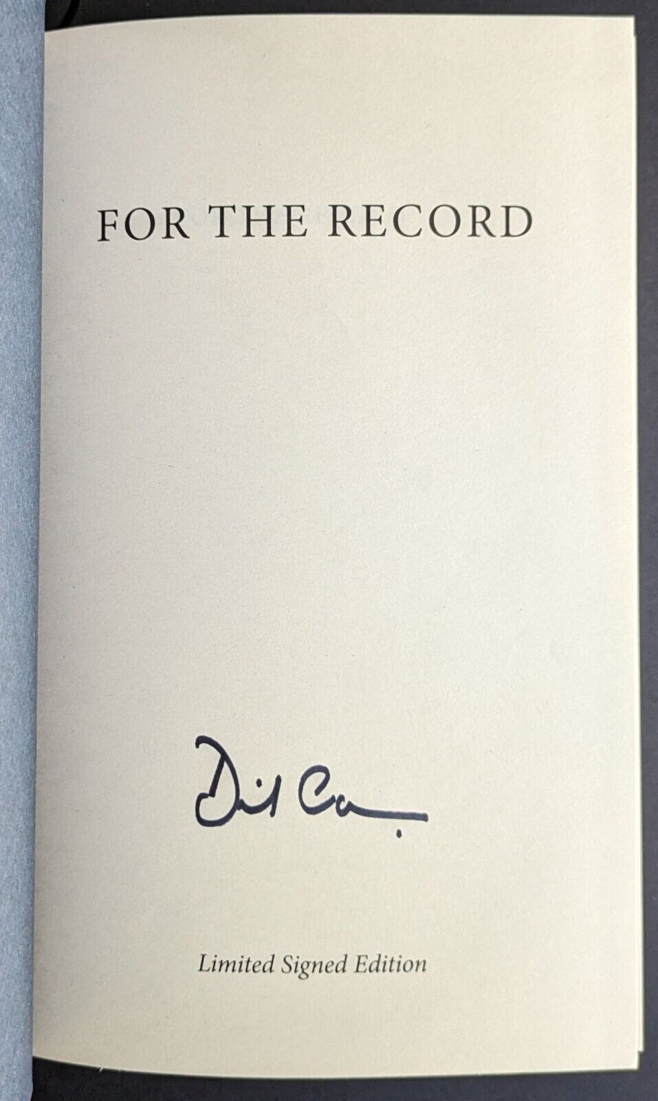 - 2019 David Cameron, former British Prime Minister, signed hardcover book "For The Record"