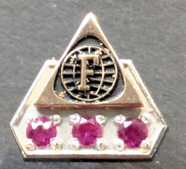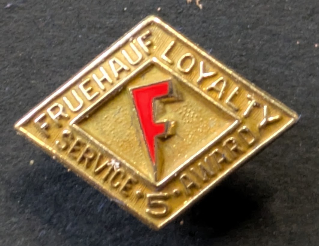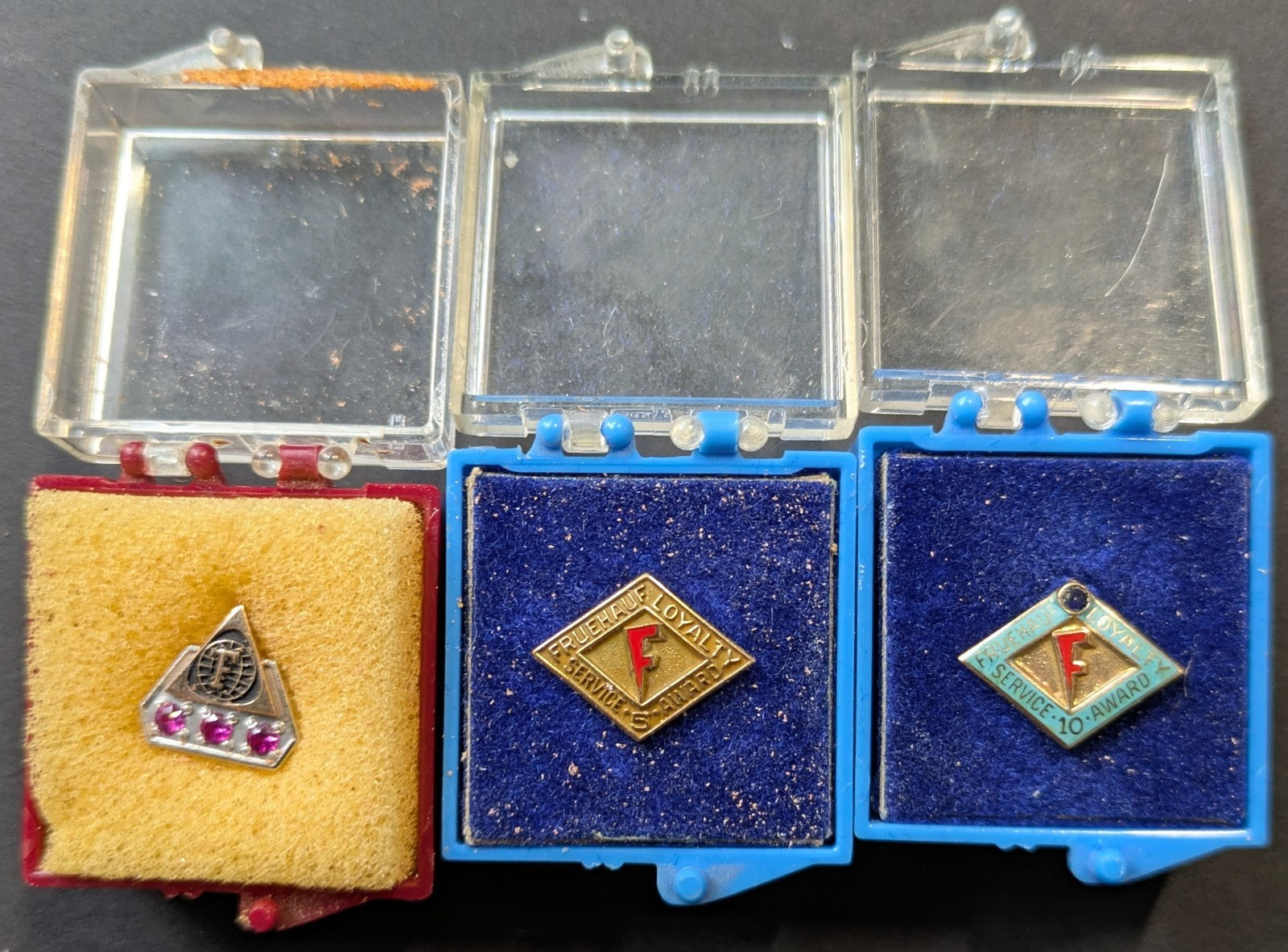 - 3 different employee service award pins from Fruehauf Trailer Corporation circa 1970s