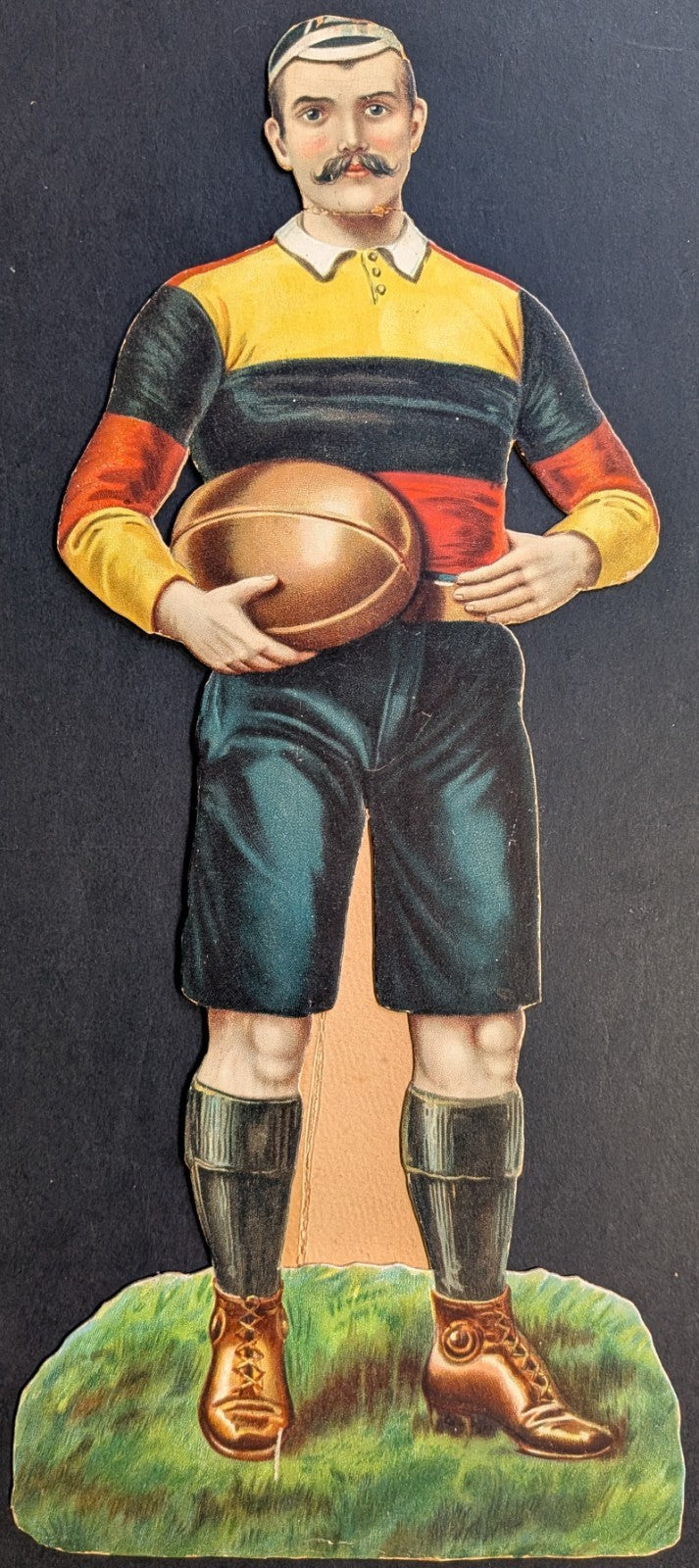 Circa 1890 Rare Football Rugby Die Cut Player 12 Inch Easel Retailer's Display