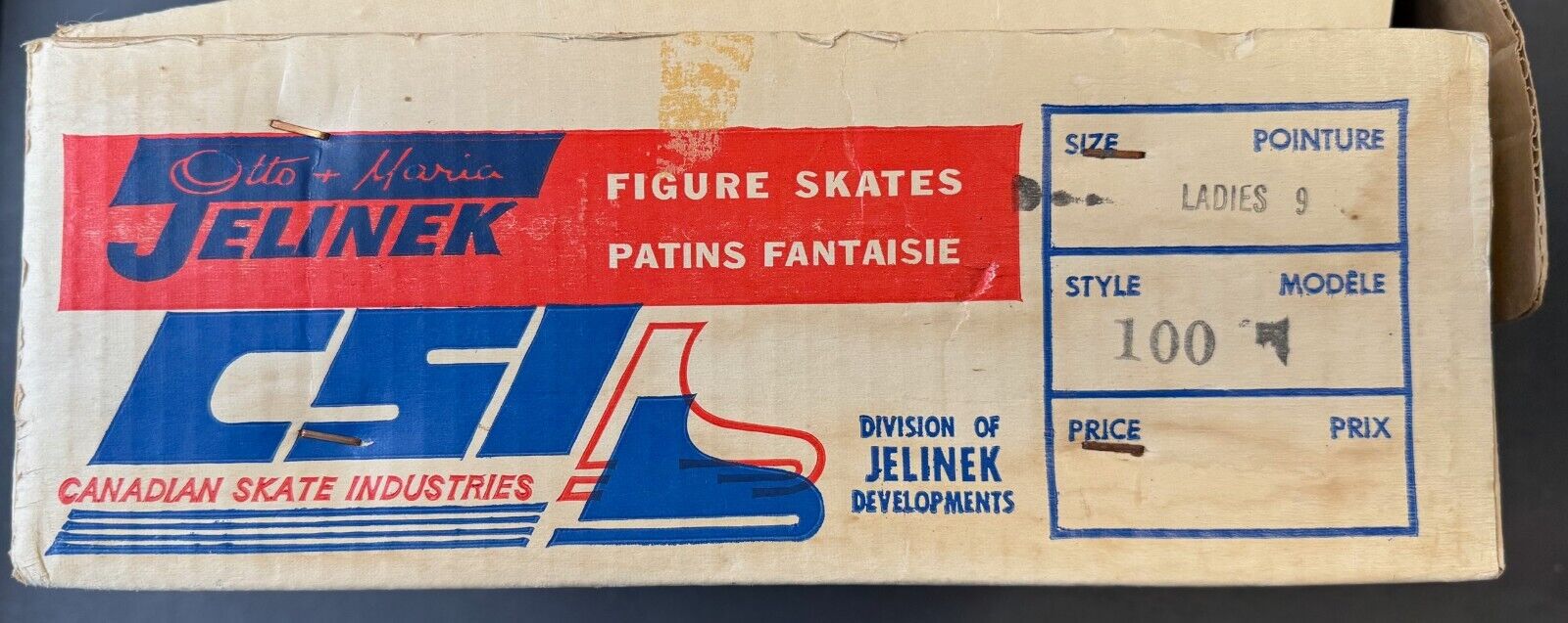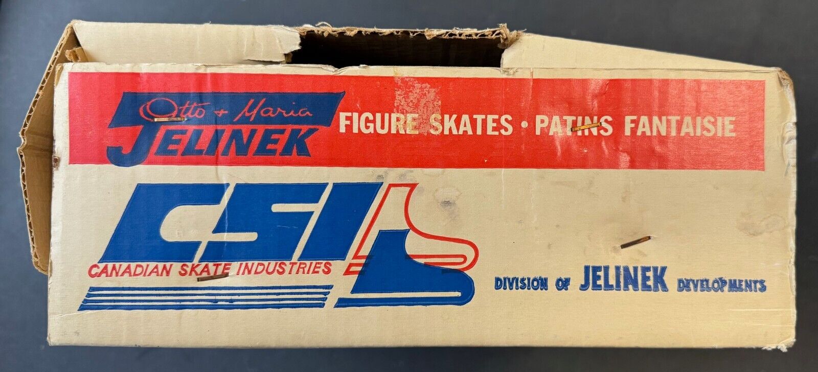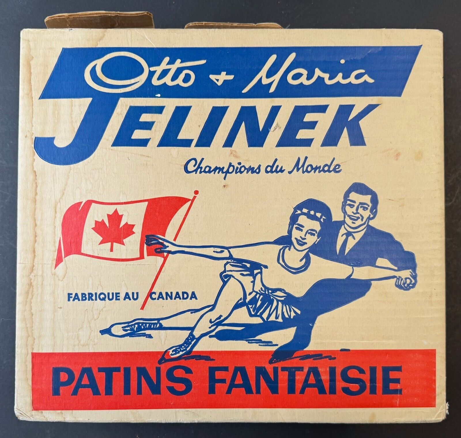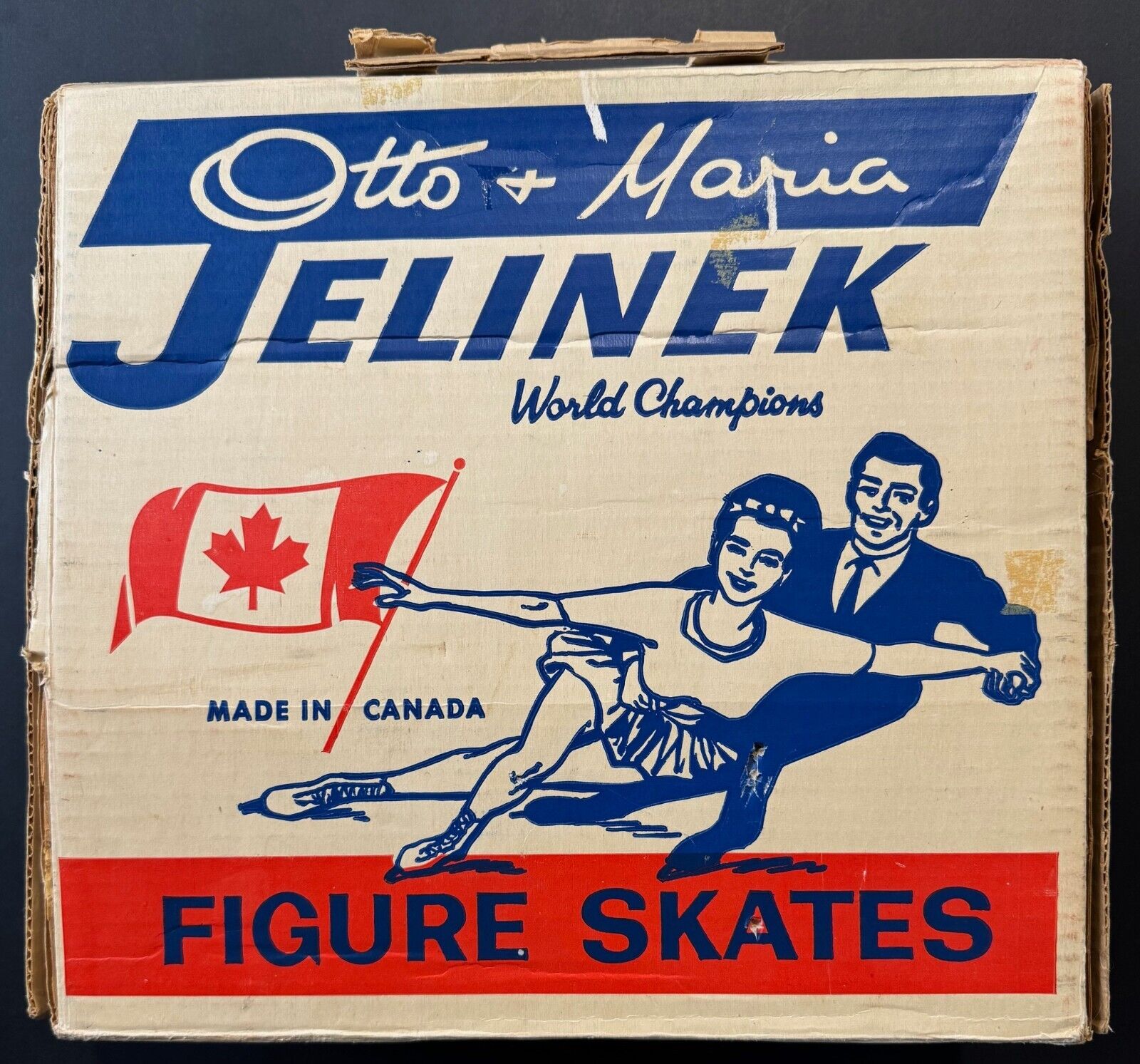 - Skates made by Jelinek Canadian Skate Industries in original box with likeness of World Champion skaters Otto + Maria Jelenek