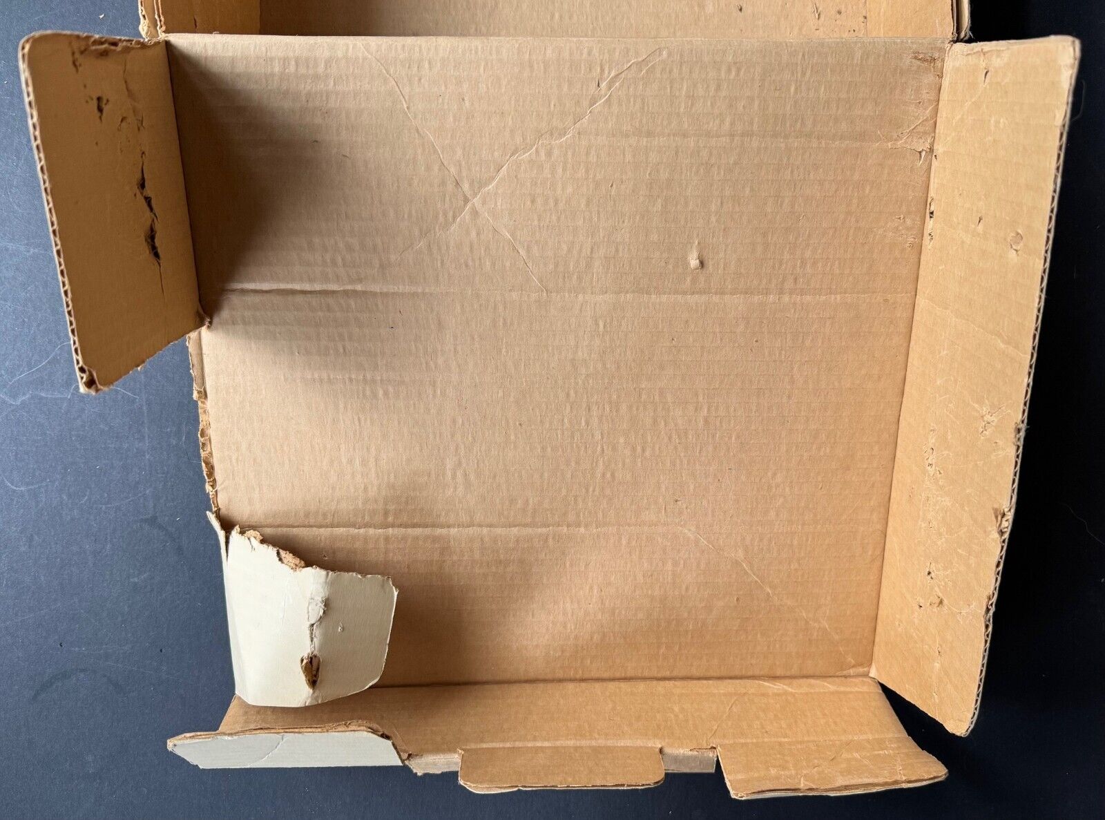 - Box is in fair condition with some ripping of the cardboard and one of the handles has come loose but is still in the box