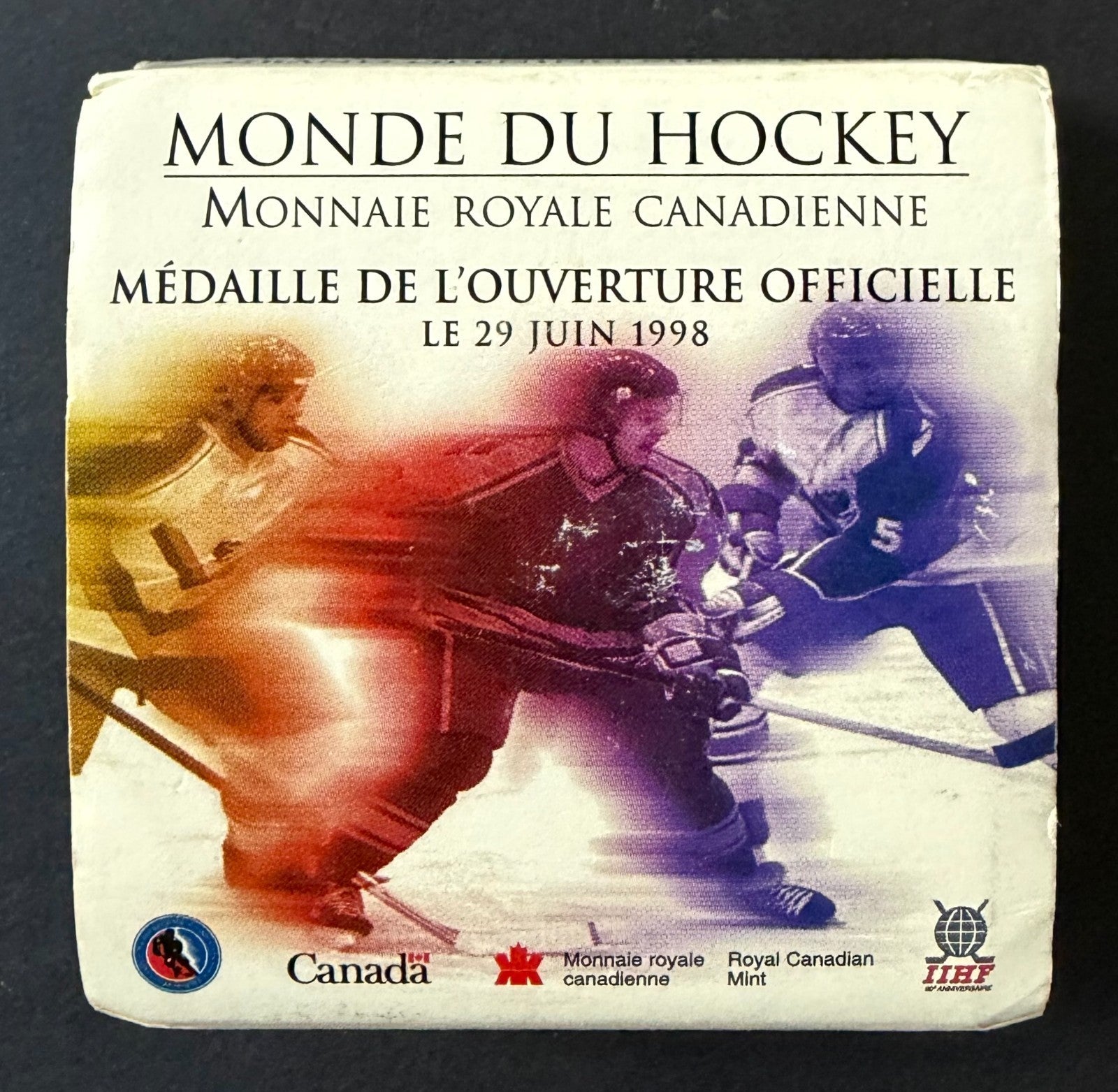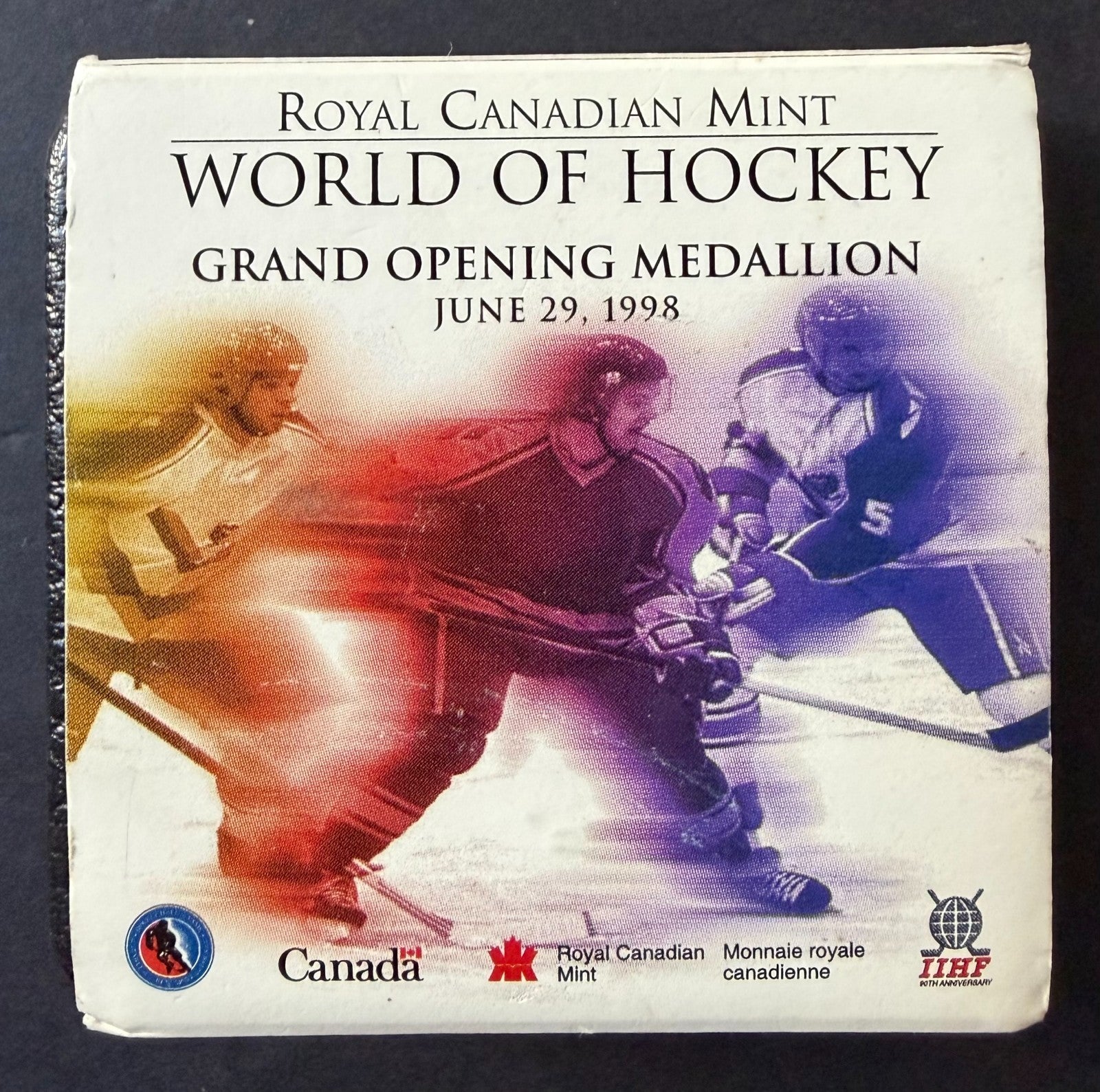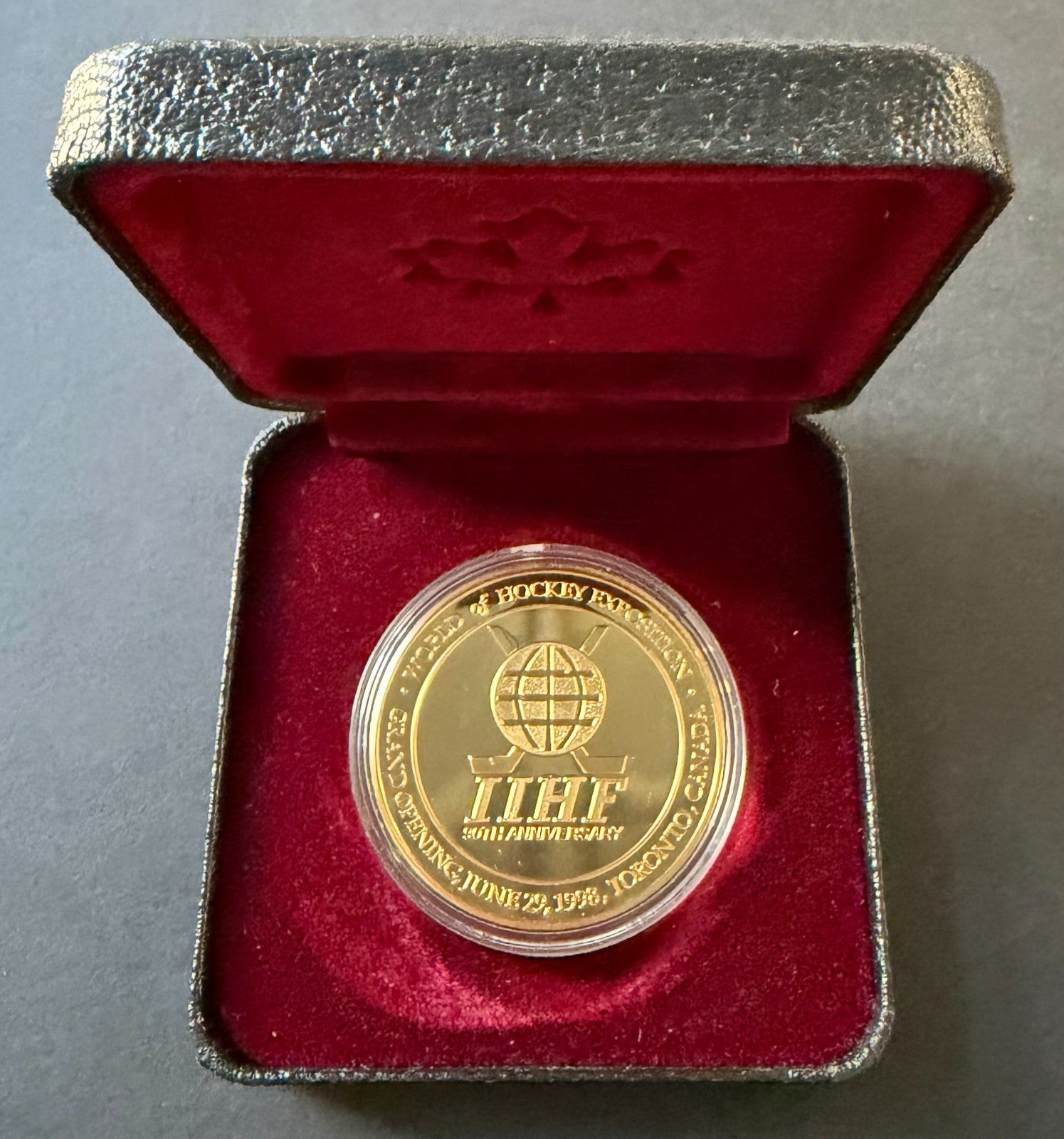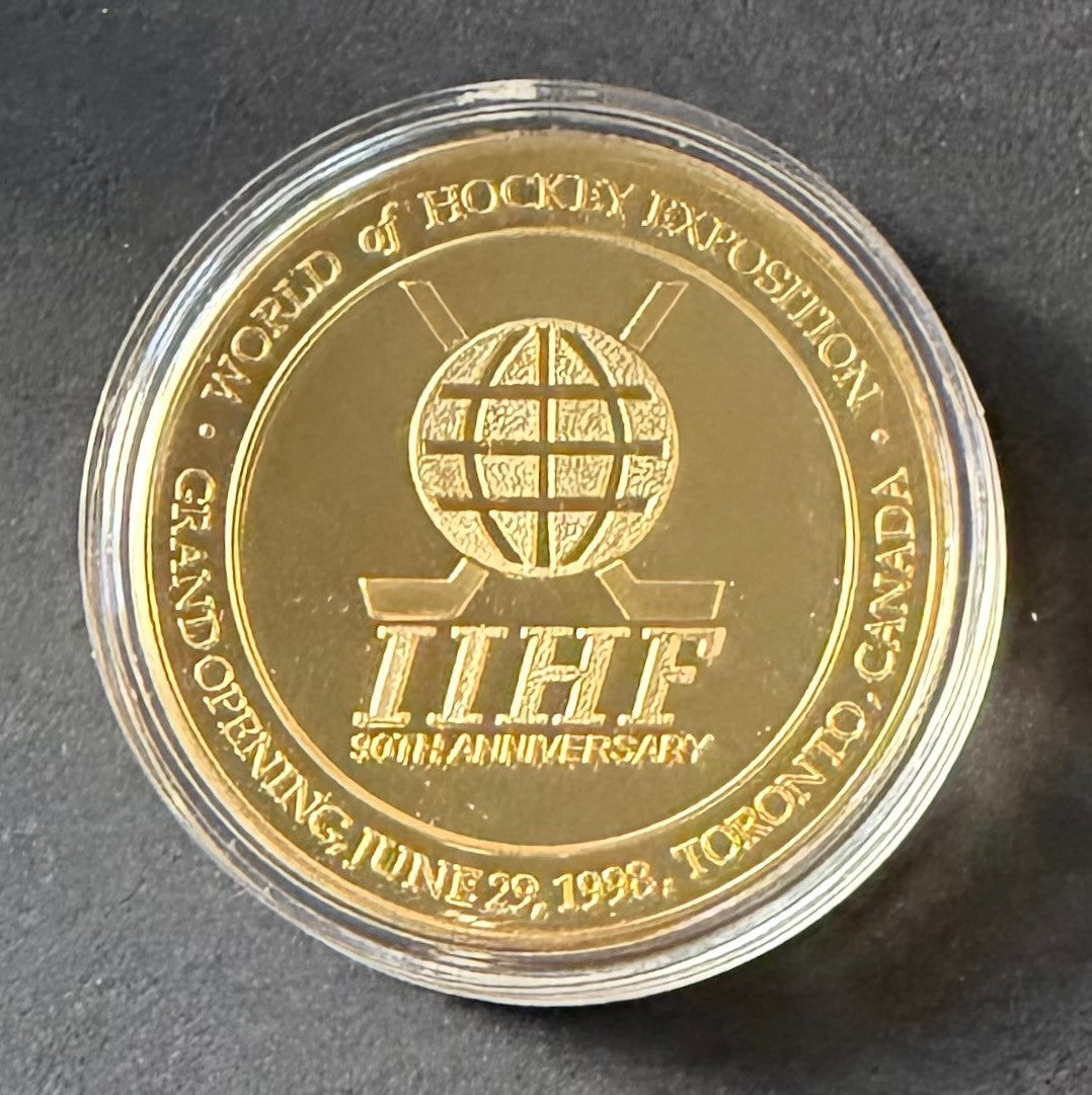 - 1oz gold plated silver coin issued to recognize the 90th anniversary of the IIHF June 29, 1998 in orginal case