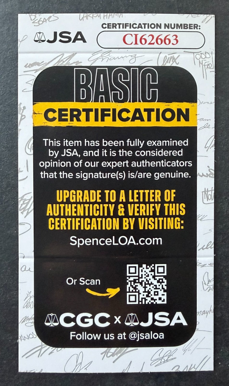 • Excellent condition; little to no signs of visible handling wear apart from a small crease in the top corner. Autograph presents well with no fading, smudging or bleeding