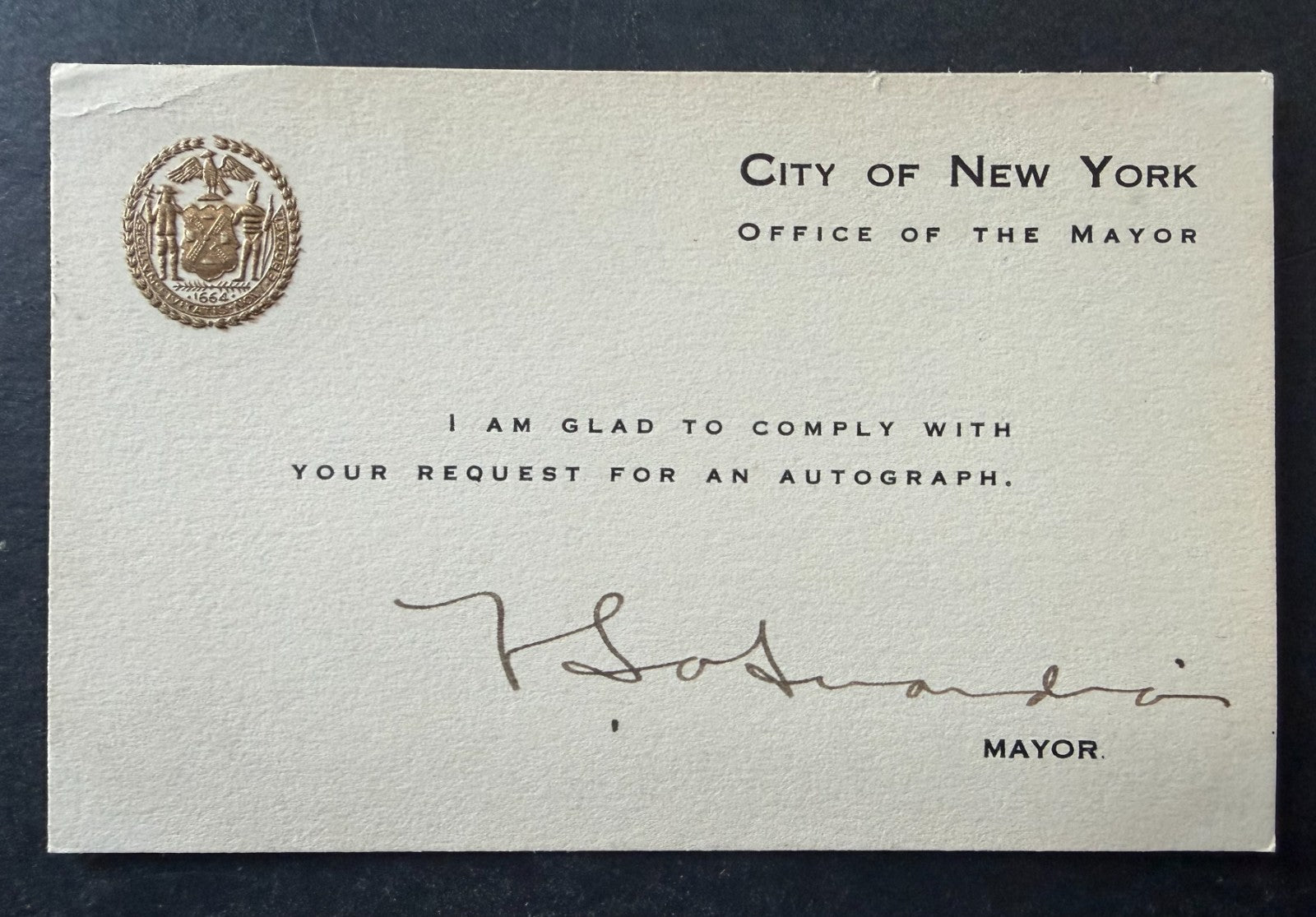 New York Mayor Fiorello La Guardia Signed Autographed Card JSA Airport Attorney