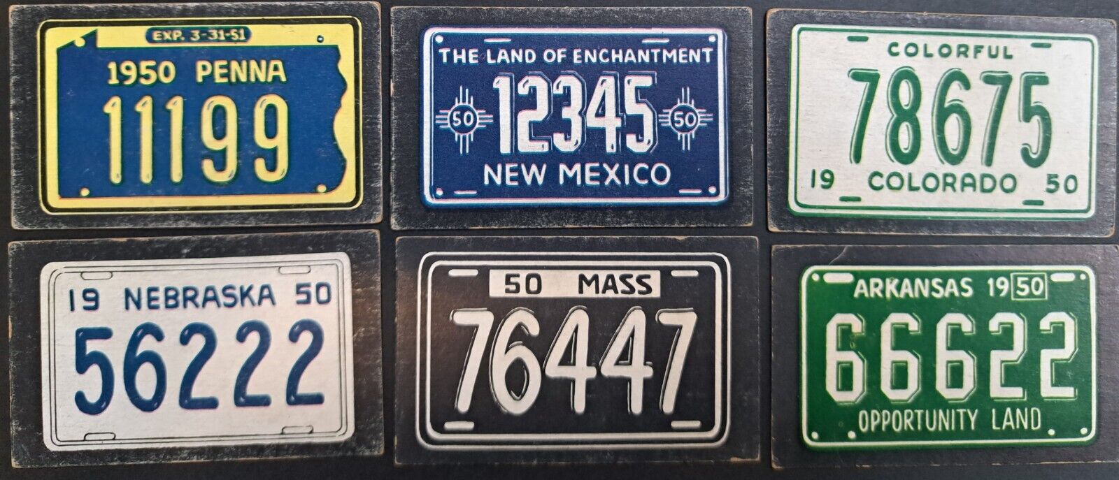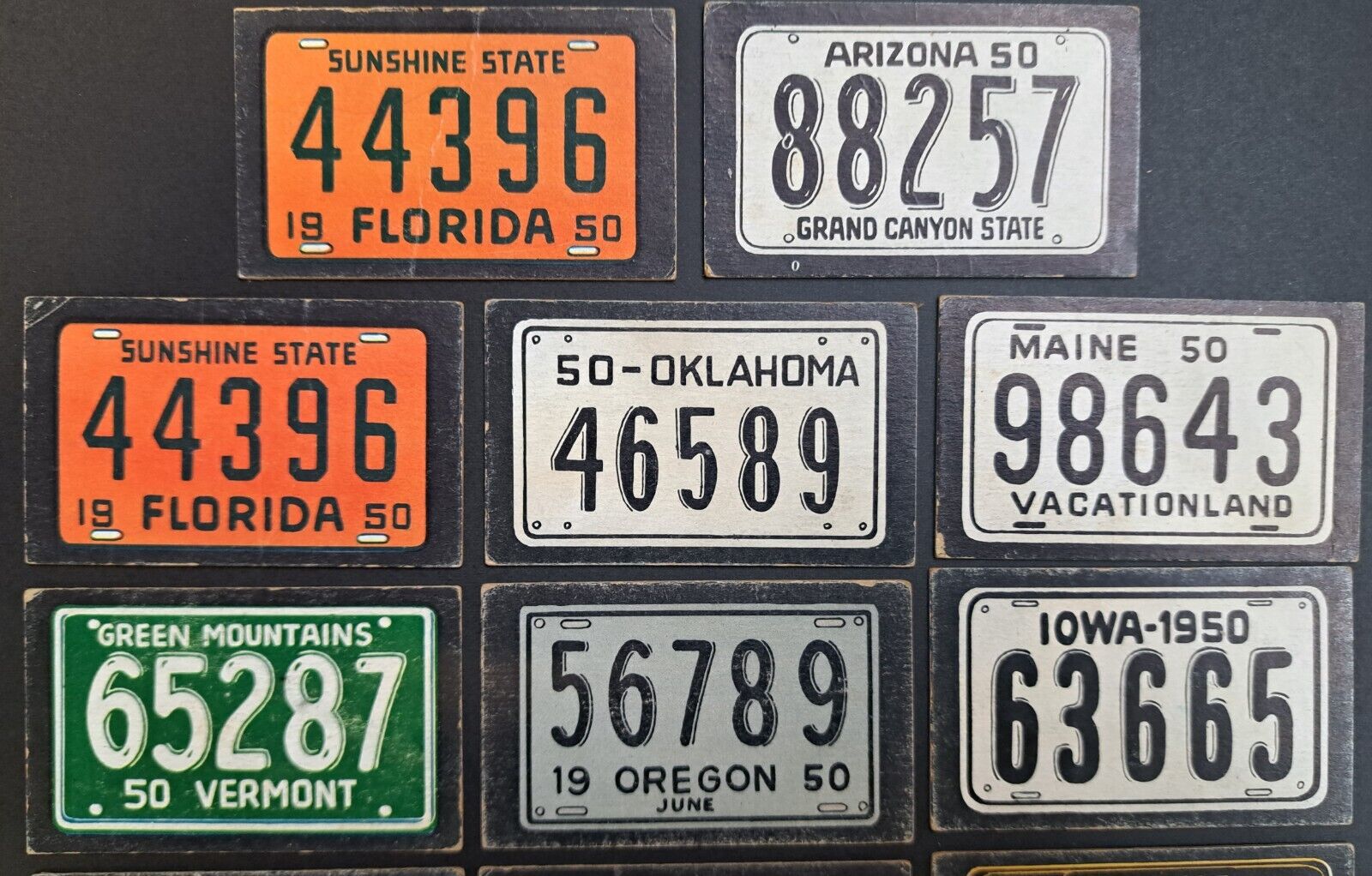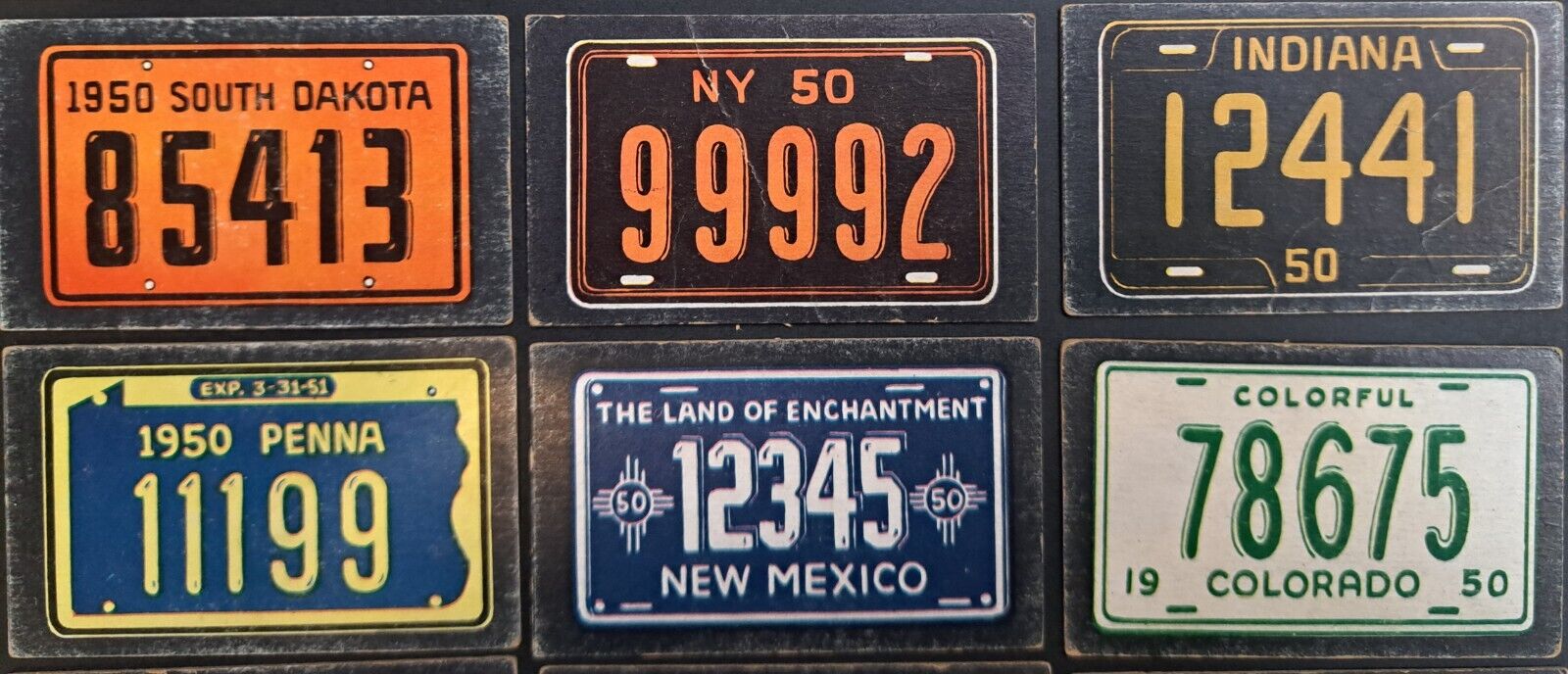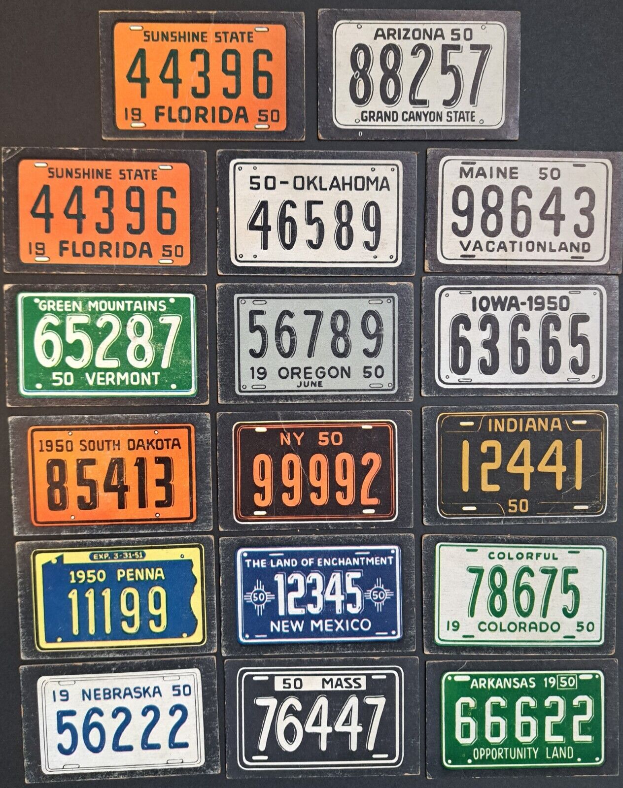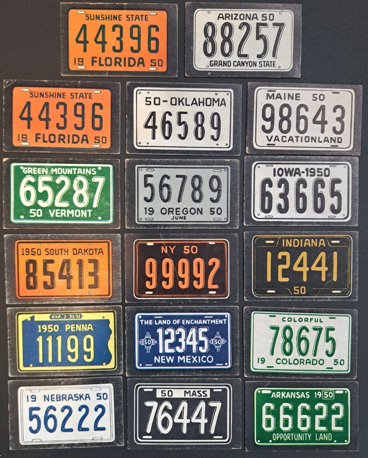 - Seventeen 1950s Topps Trading Card License Plates featuring various American states