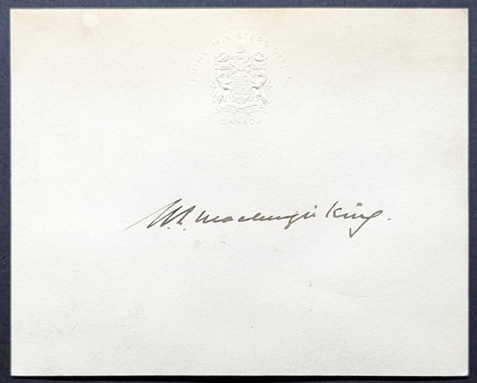 • Canadian Prime Minister William Lyon Mackenzie King Signed Card