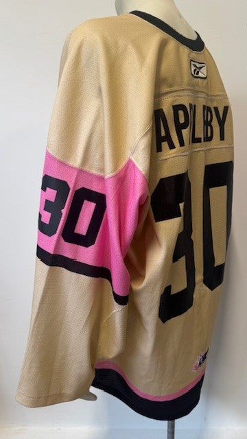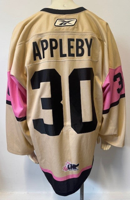 • Goalie Jimmy Appleby team issued/player worn jersey from their ''Pink in the Rink'' game in October of 2010