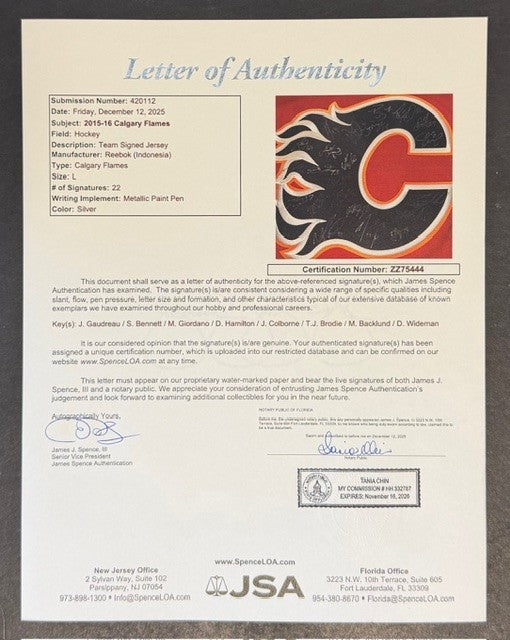 - 2015-16 Calgary Flames Team Signed x22 Johnny Gaudreau Reebok Jersey JSA