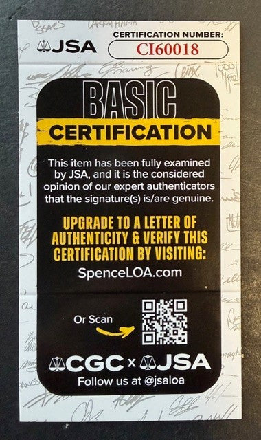 - Excellent condition; some visible soiling along the bottom hemline. A few small thread pulls. Otherwise minimal signs of visible handling wear. Autograph presents well with no fading, smudging or bleeding