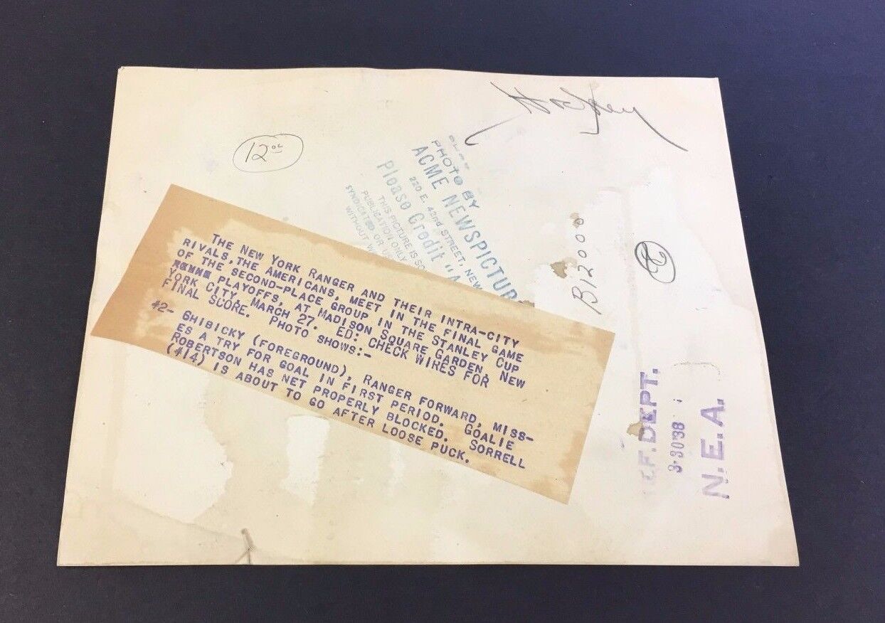 - 1938 Press/Wire Photo of the New York Americans vs Rangers in the final game of the 2nd Round of playoff games for the Stanley Cup