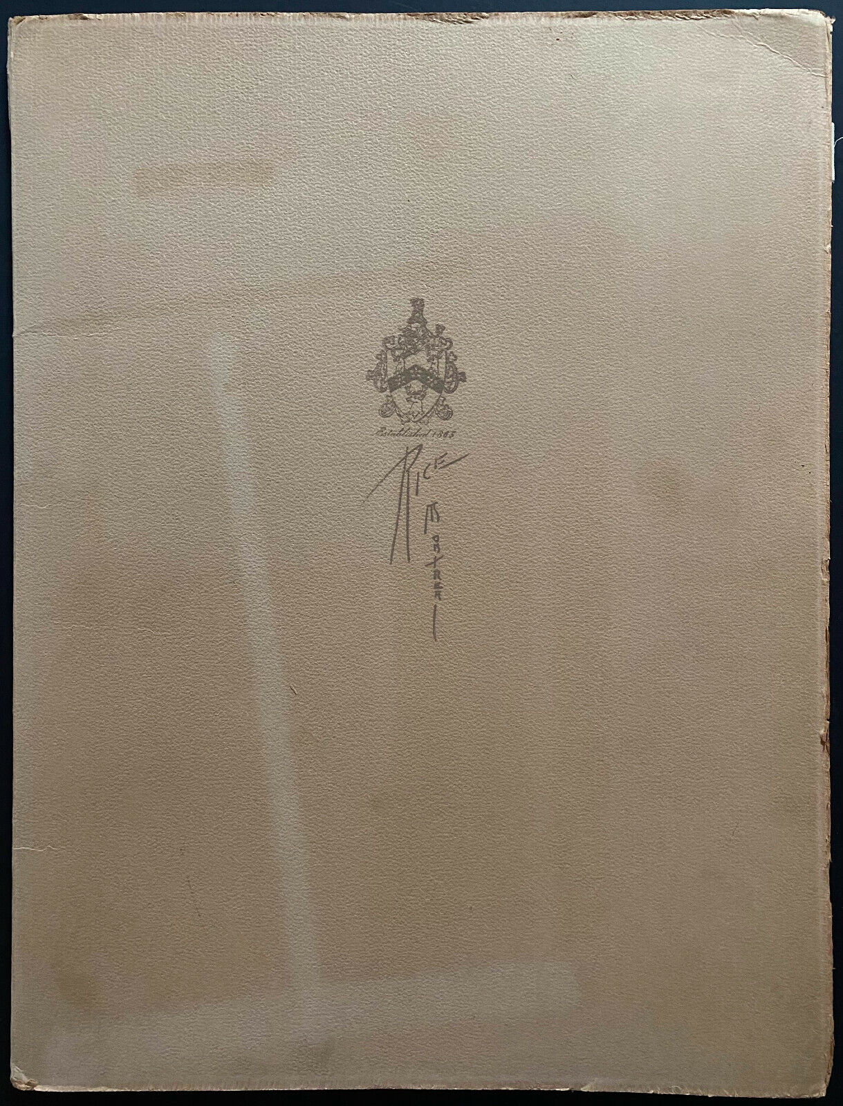 Photo itself is in excellent condition with little to no visible handling wear. Folder is in very good condition; some tearing along the spine and handling wear along the edges but still presents very well