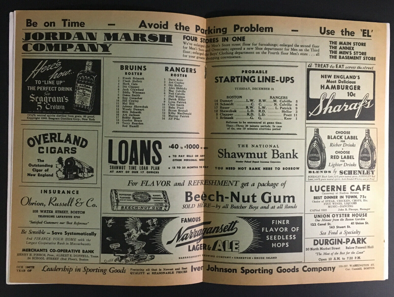 - Original December 31, 1941 Boston Garden Sport News official NHL hockey program