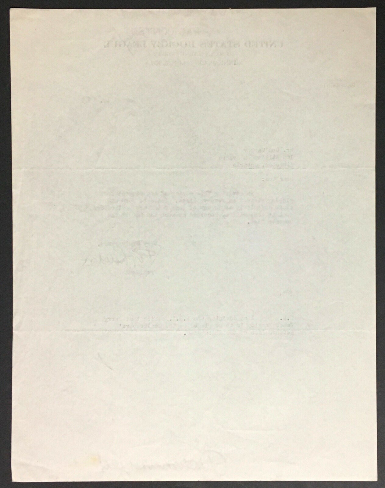 - Dated August 10, 1945 United States Hockey letter addressed to Gus Marker and signed by the league president