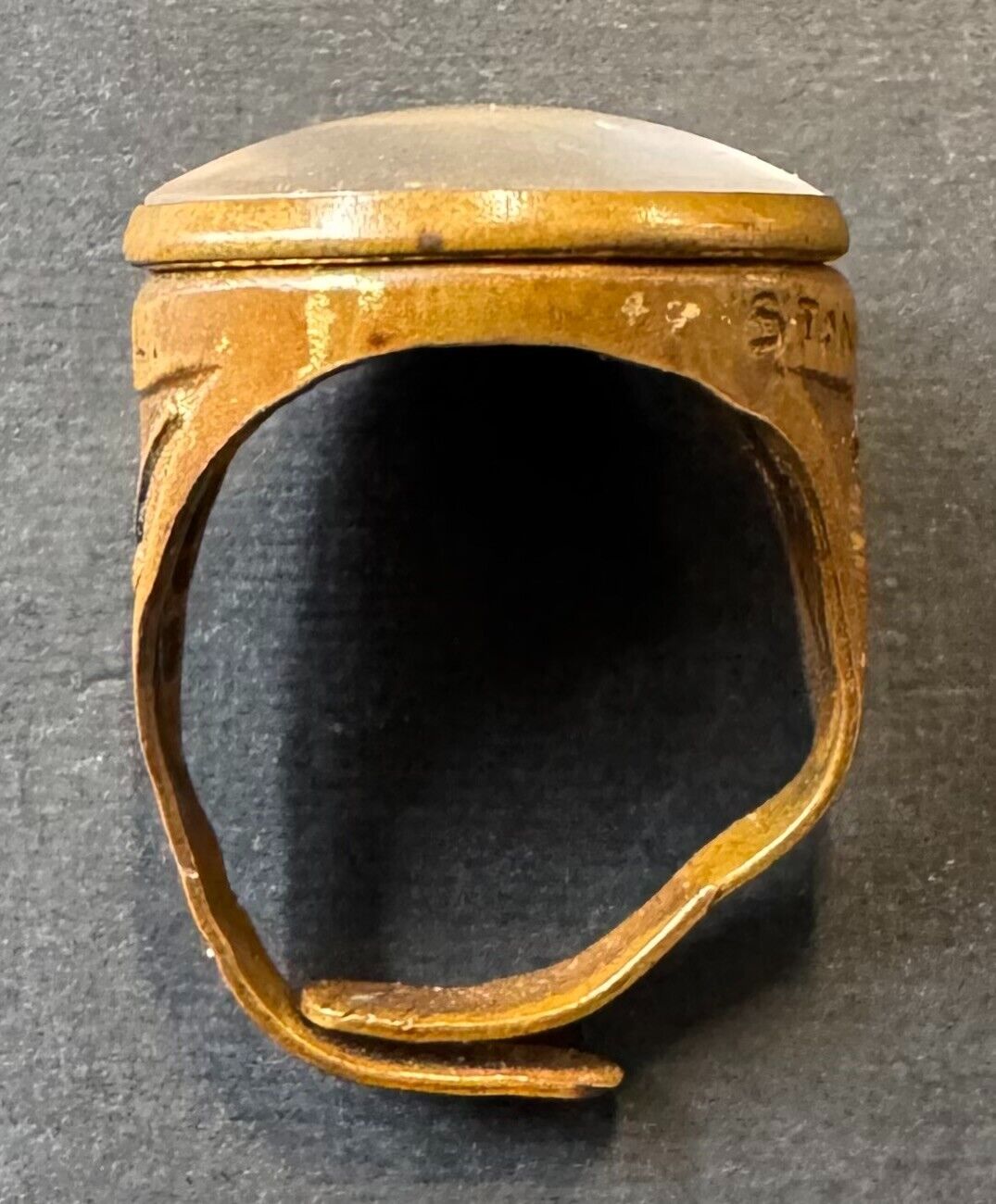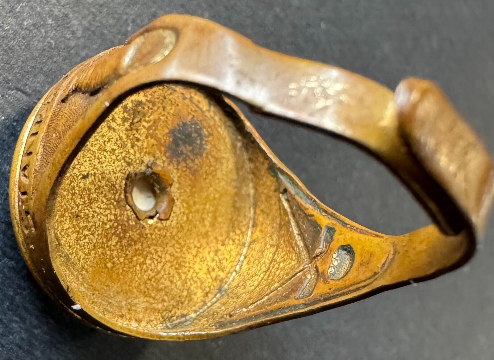 • Very good condition; minimal oxidation on the inside of the ring. Slight warping of band. Small bubble in protective glass. Some small dings/scratches and minor signs of general handling wear