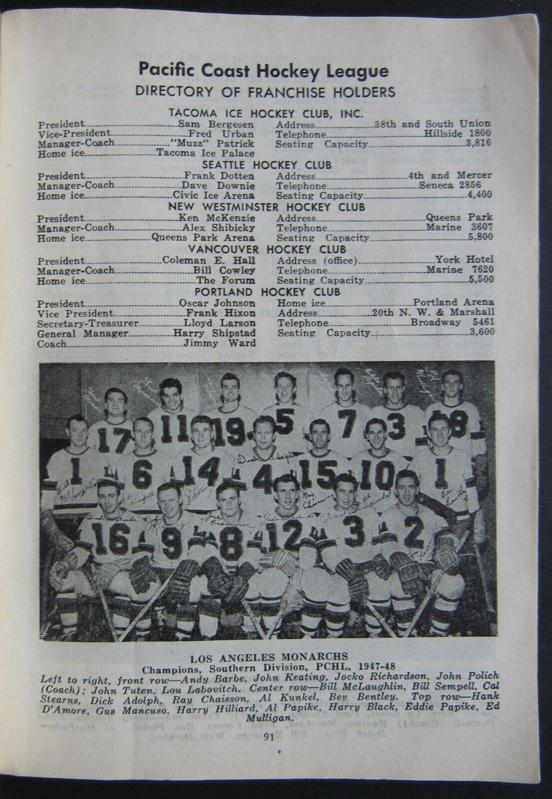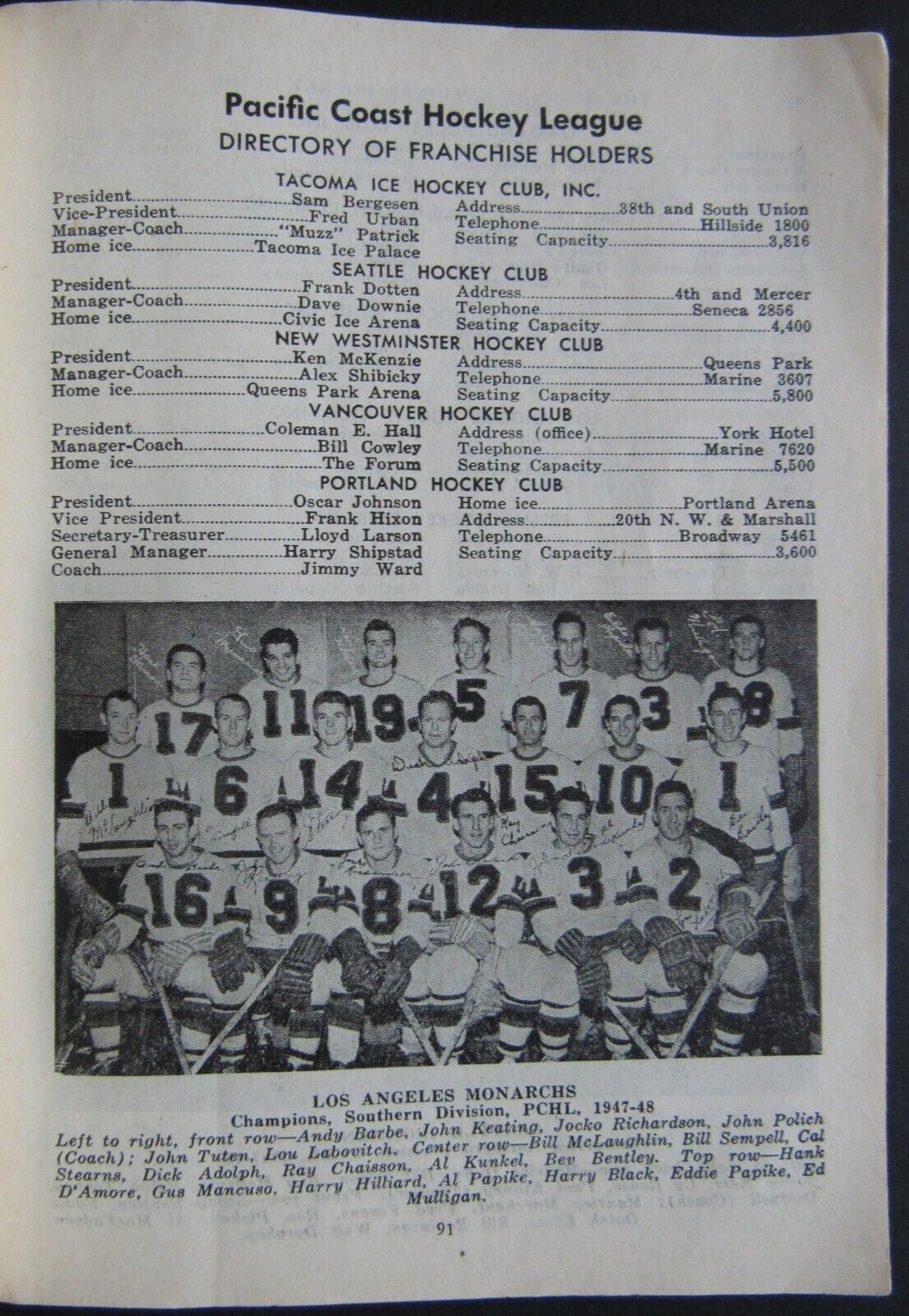 1949 Hendy Hockey Guide Rules Records and Schedule + Who's Who in Hockey NHL