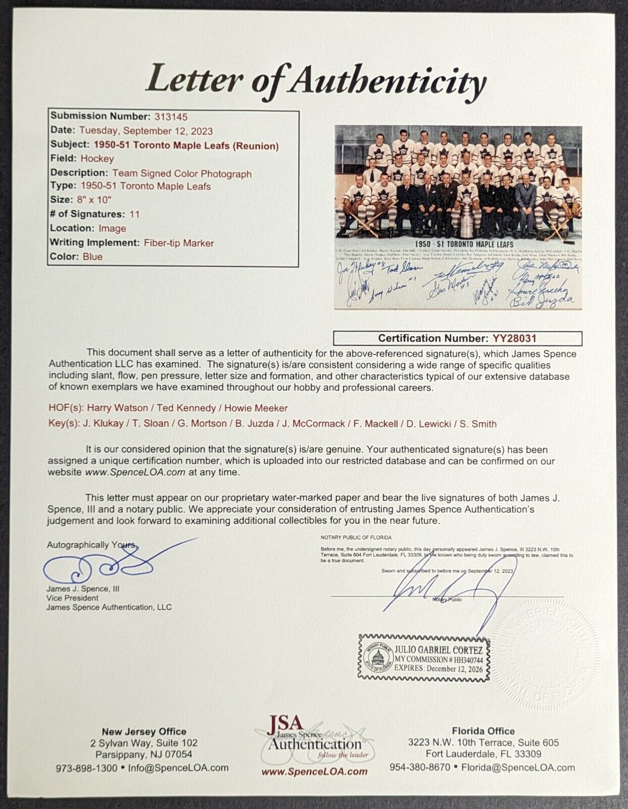 1950/51 Toronto Maple Leafs Stanley Cup Autographed Team Photo Signed x11  JSA