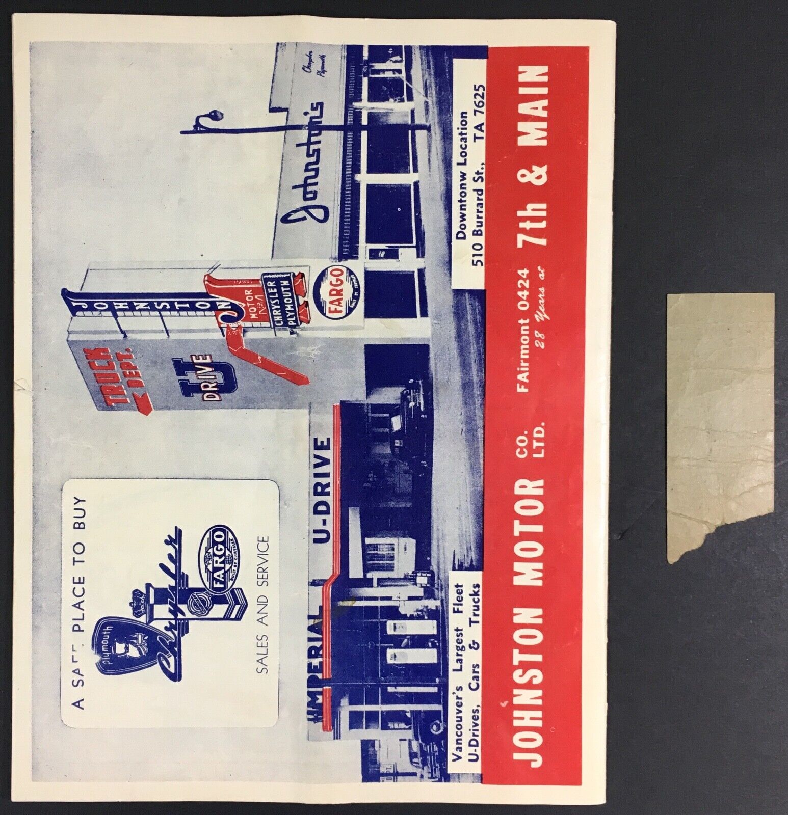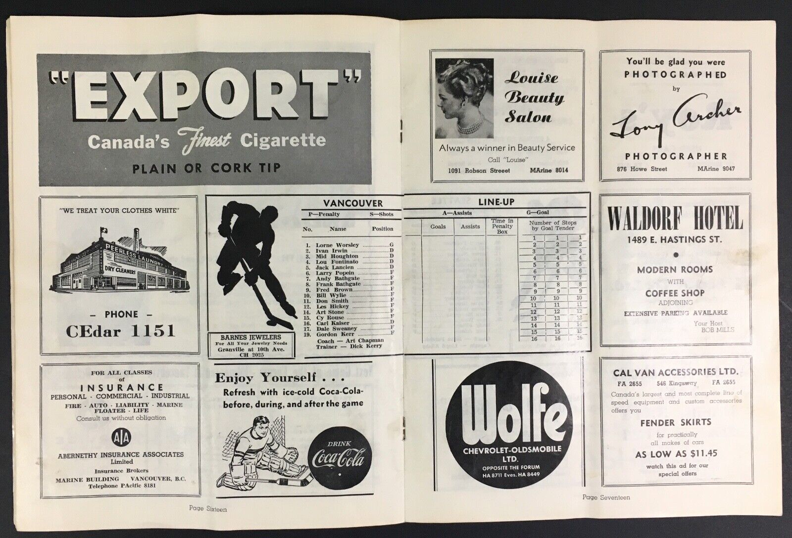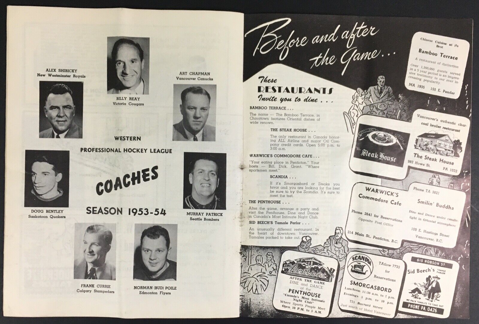 - 1953-54 season program and ticket for Western Professional Hockey League game played at Vancouver Forum