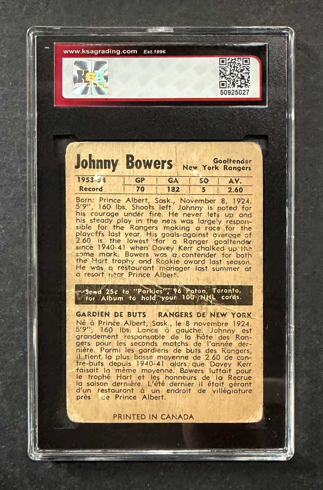 - 1954-55 Parkhurst #65 Johnny Bower New York Rangers NHL Rookie Hockey Card