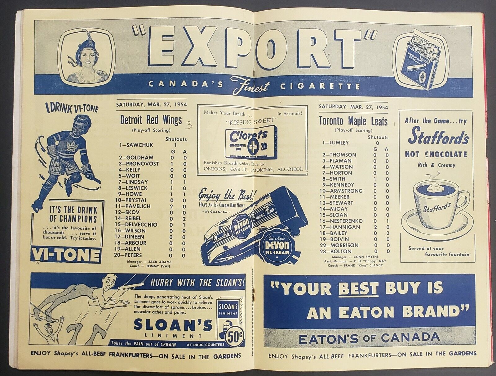 - March 27, 1954 Stanley Cup Semi - Final Game 3 Program @ Maple Leaf Gardens, Toronto