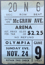 - November 24, 1957 hockey ticket stub from Olympia Stadium in Detroit