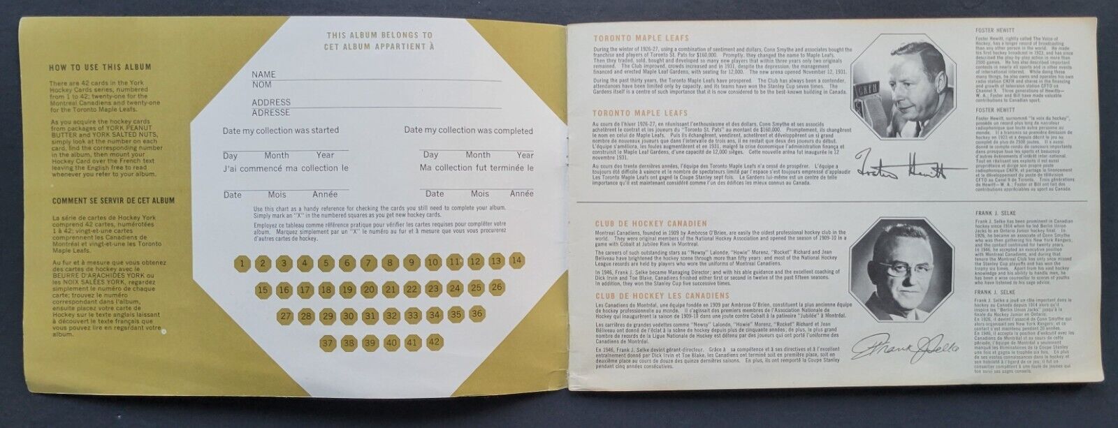 - 1961/1962 York Peanut Butter full set of 42 NHL hockey cards with mounting album