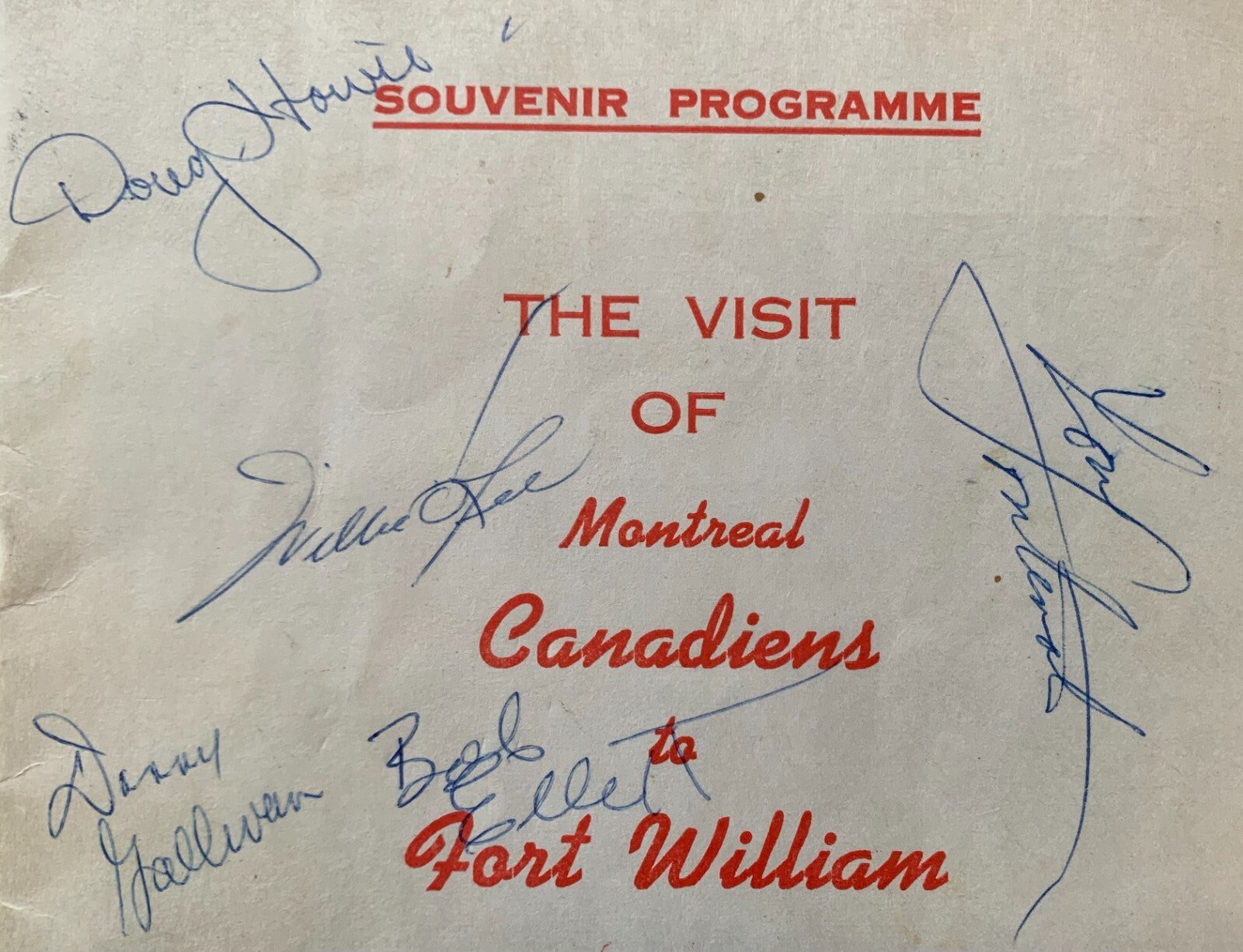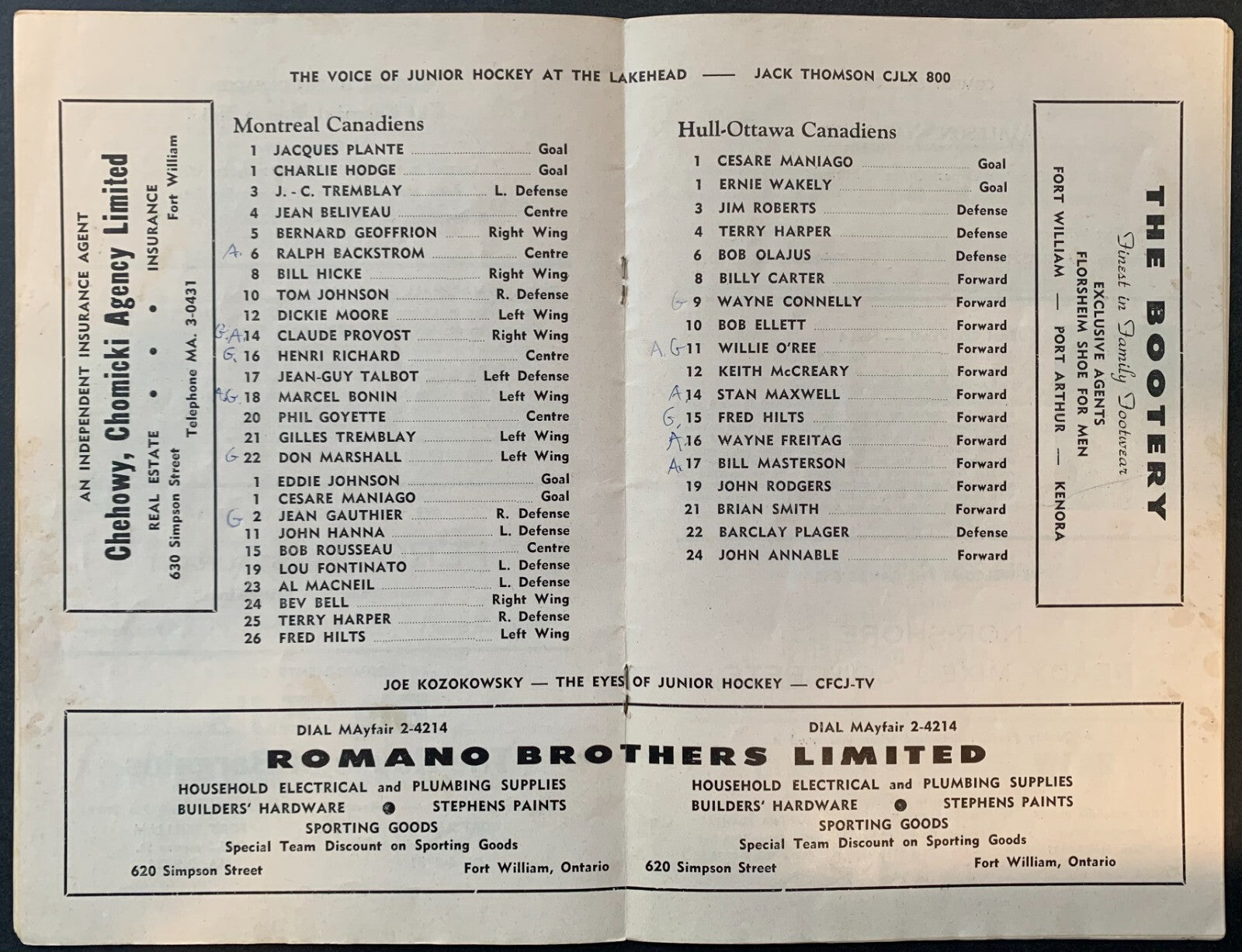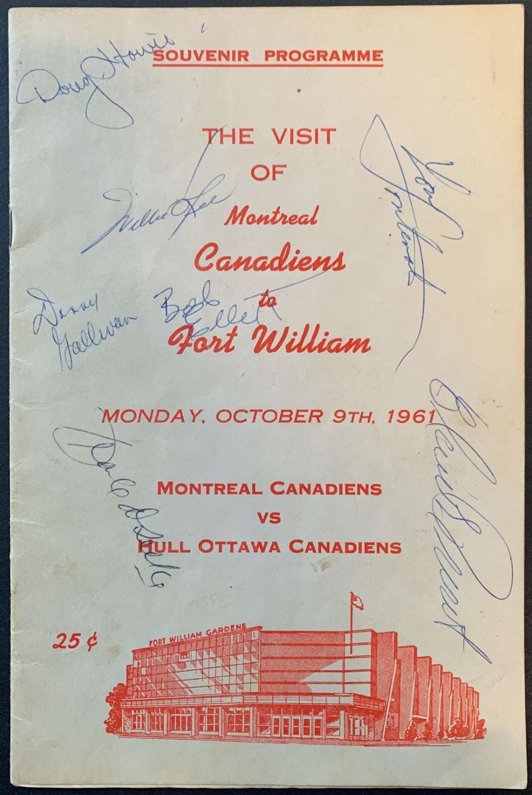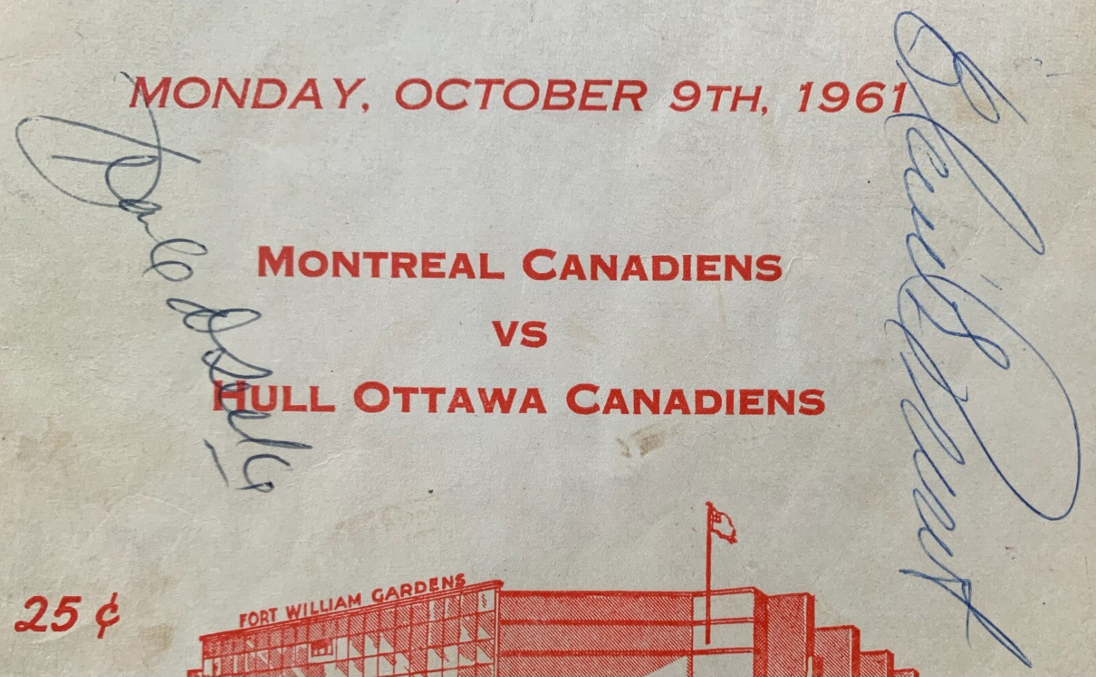 - Oct. 9, 1961 Fort William Gardens program between the Montreal Canadiens and Hull Ottawa Canadiens