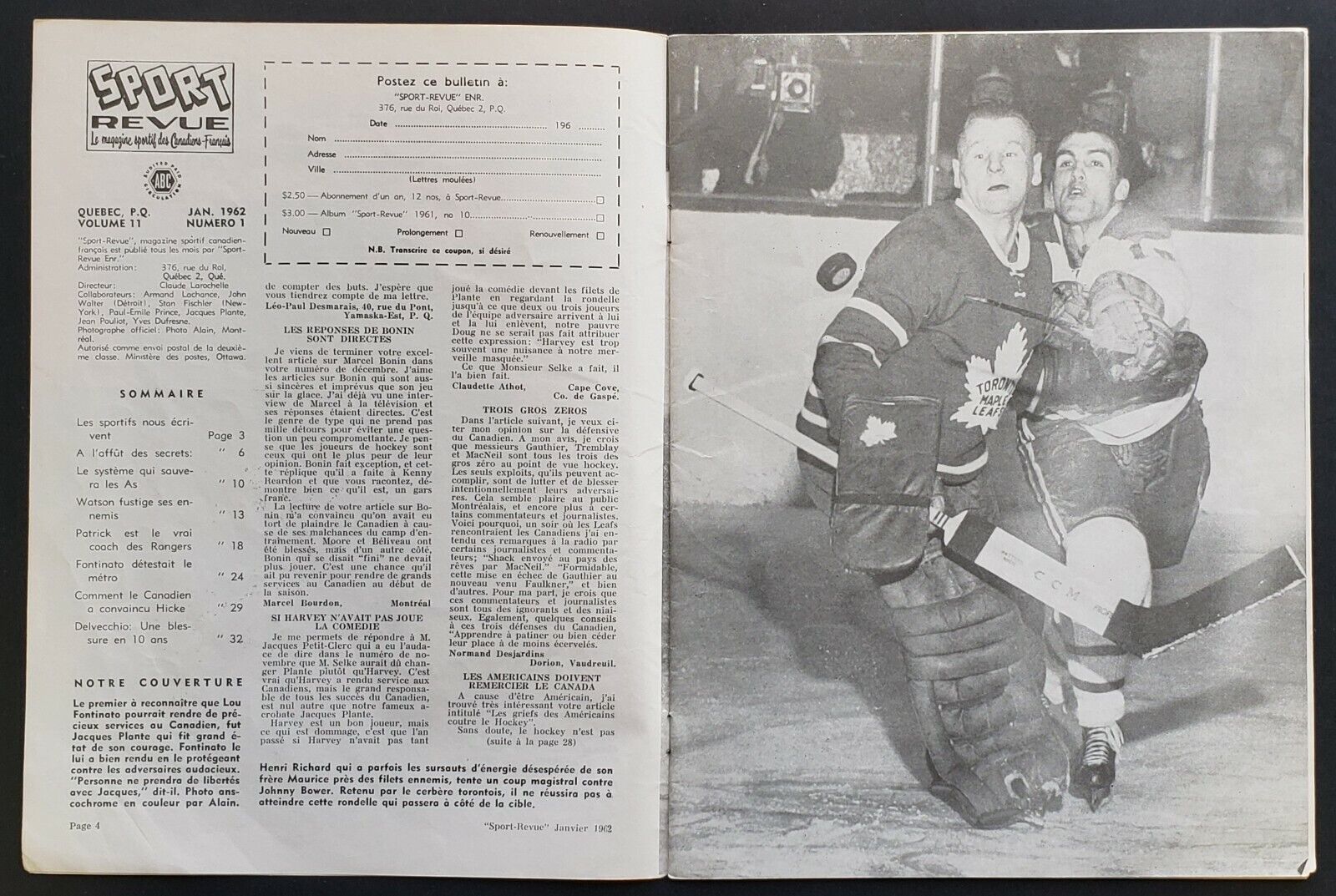 - Montreal Canadiens Jacques Plante & Lou Fontinato featured on cover
