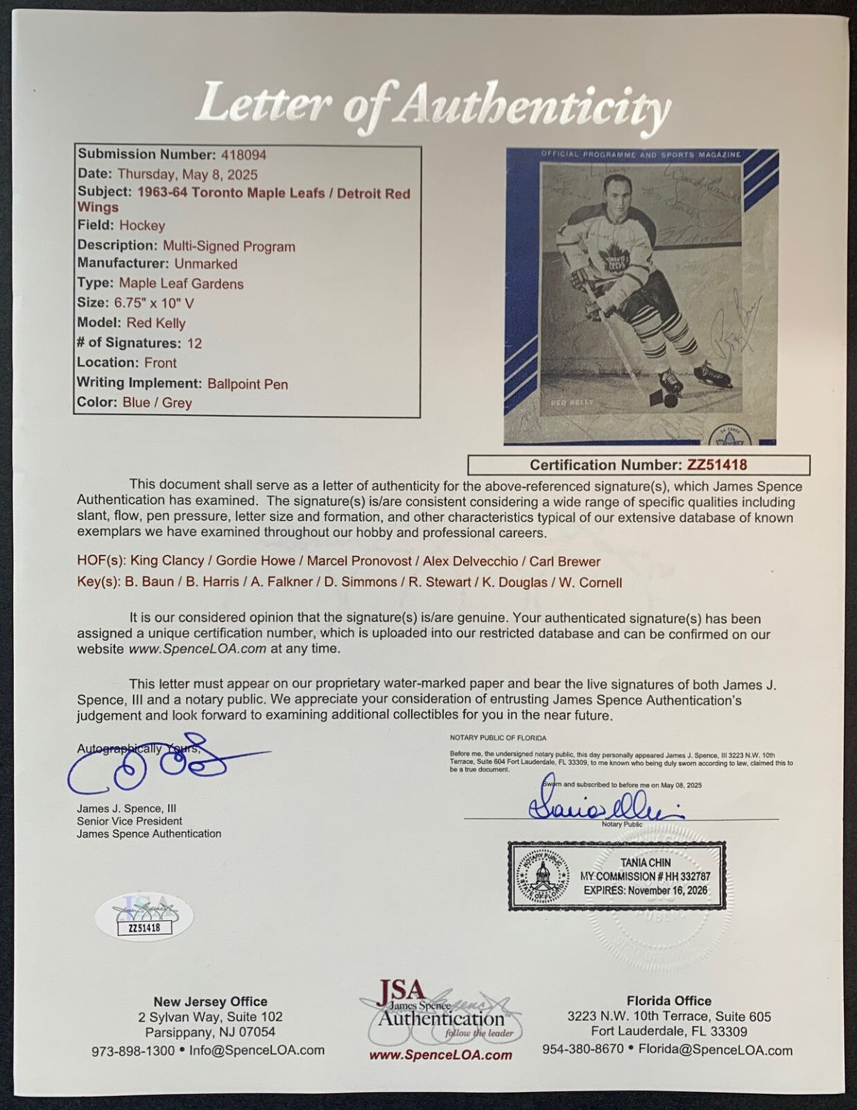 1963 Maple Leaf Gardens Signed x12 Program JSA NHL Hockey Howe Clancy Delvecchio