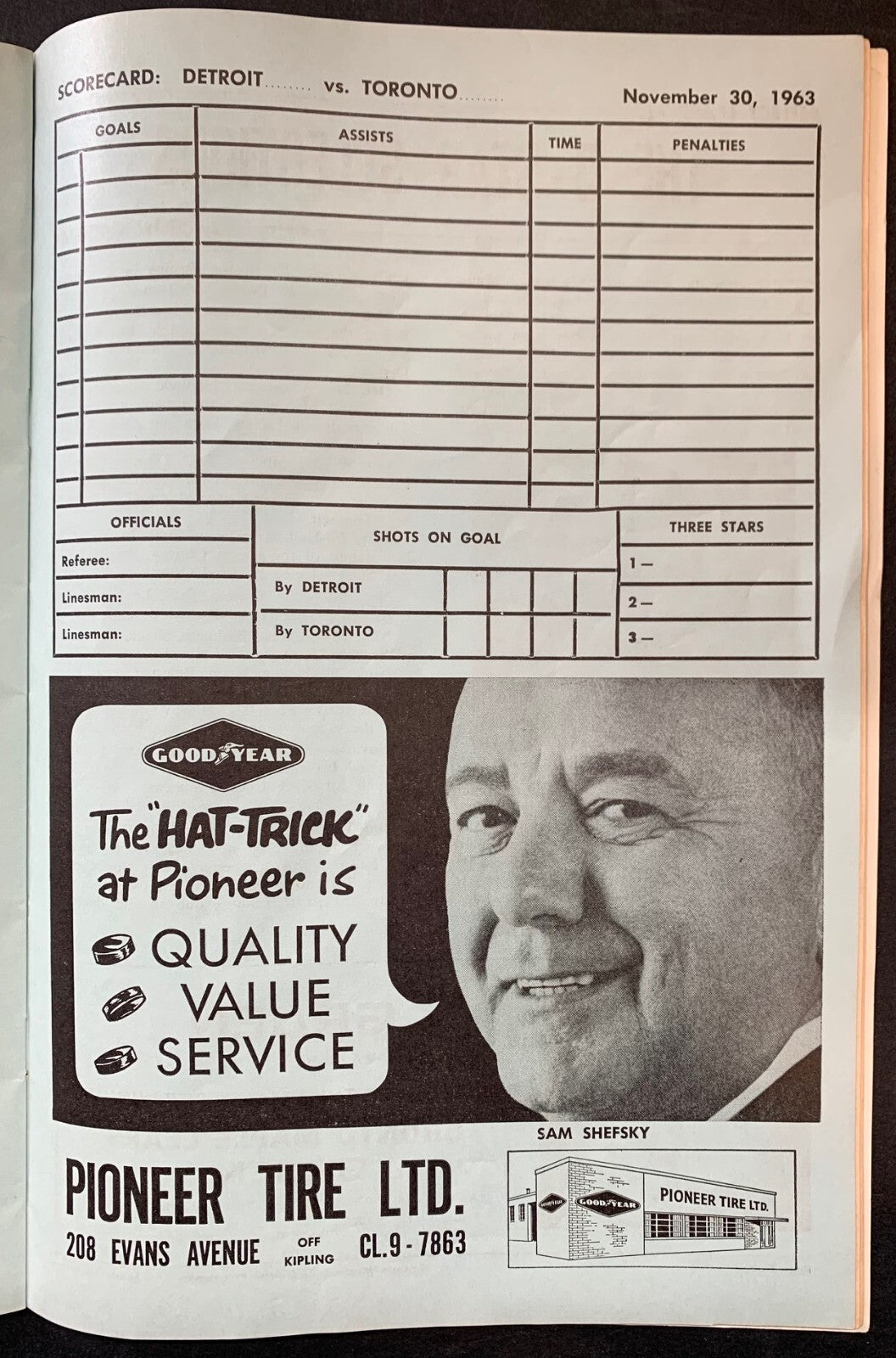 • Nov. 30, 1963 program where Leafs tie the Detroit Red Wings 1-1