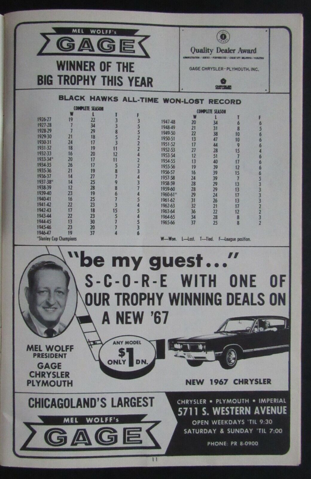 - January 15, 1967 NHL Program @ Chicago Stadium