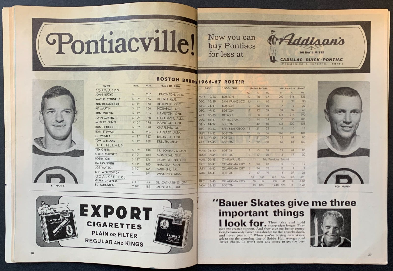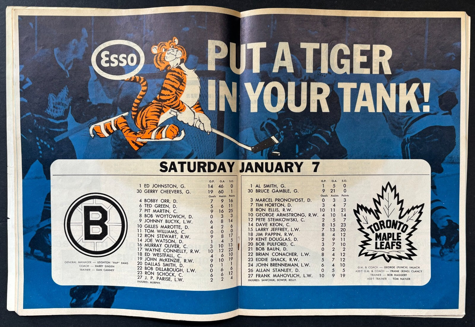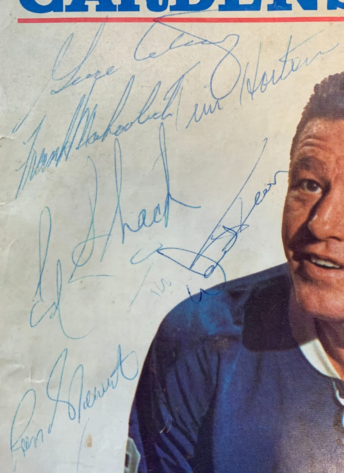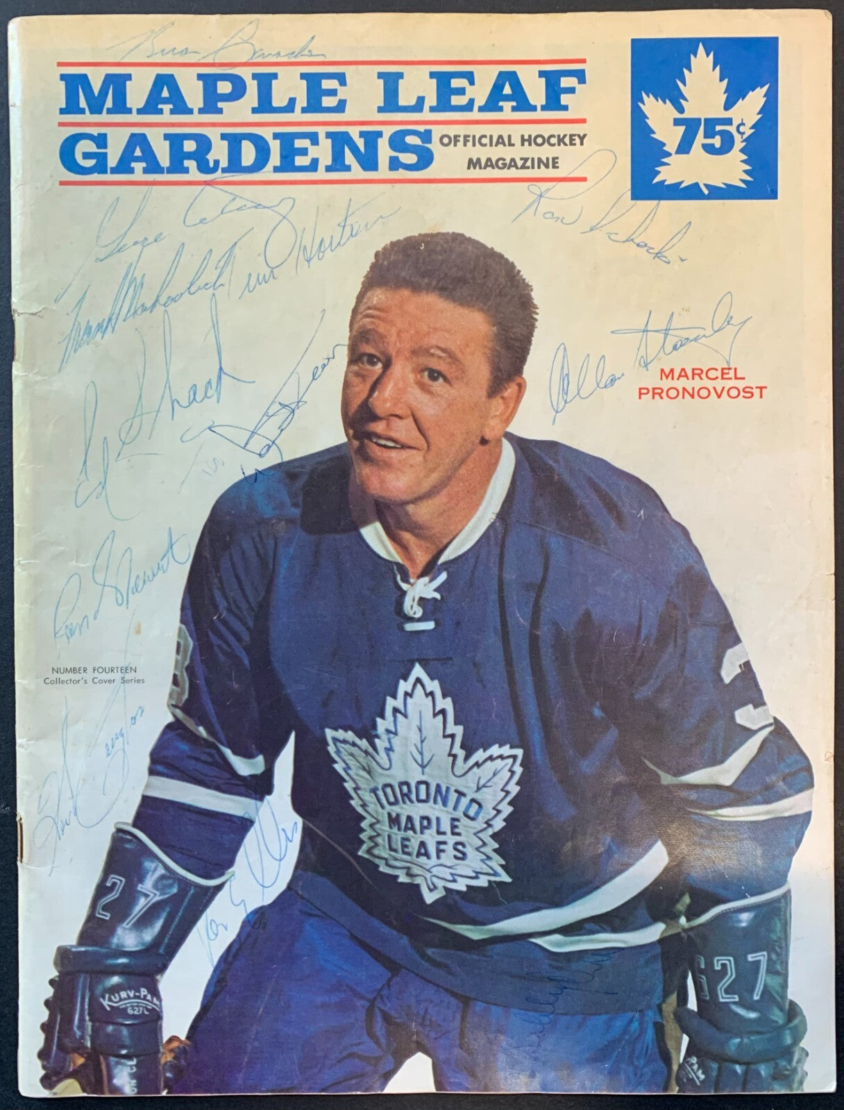 • Jan. 7, 1967 Maple Leaf Gardens program signed by Tim Horton, George Armstrong, Dave Keon, Frank Mahovlich, Allan Stanley, Ron Ellis, Eddie Shack, Kent Douglas, Ron Stewart, Brian Conacher and Ron Schock