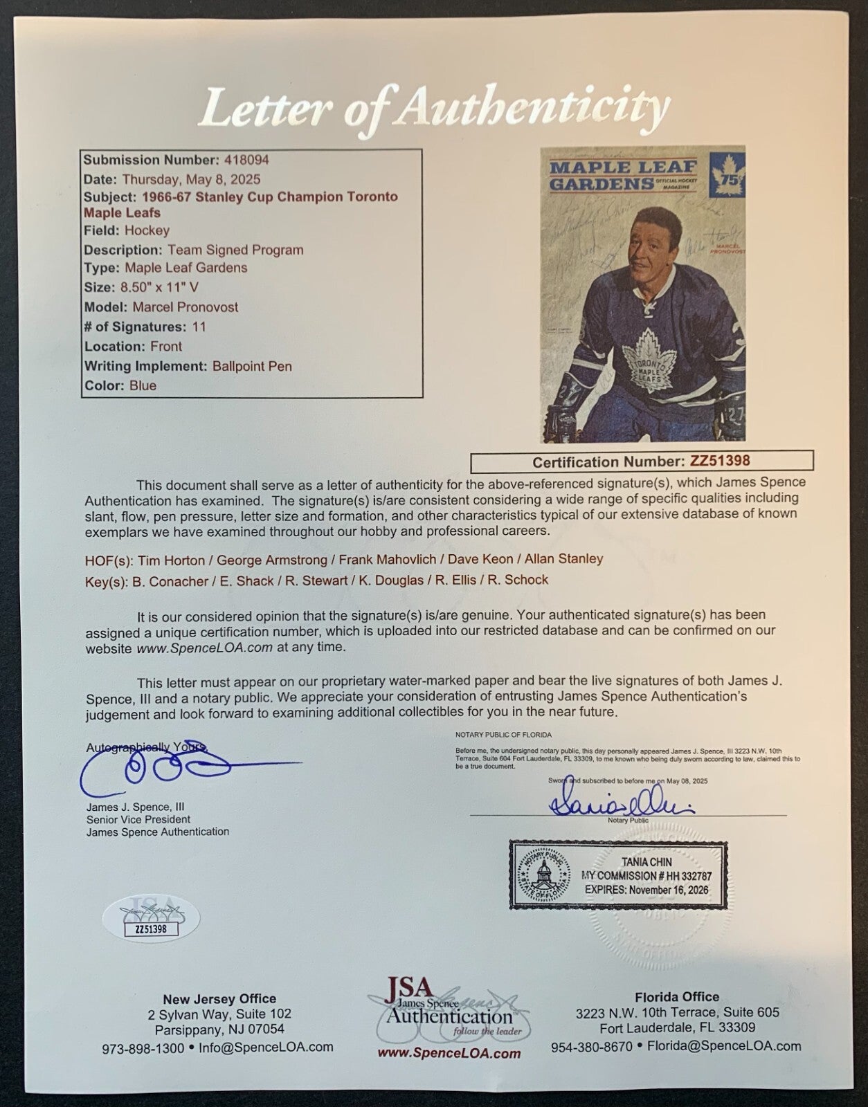 1967 Maple Leaf Gardens Signed Program Autographed x11 NHL Leafs Horton JSA LOA