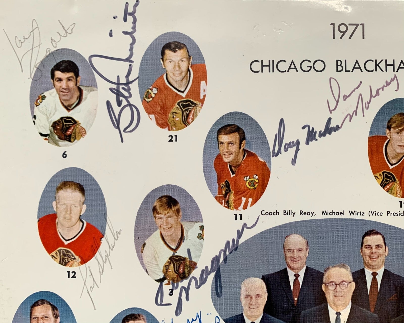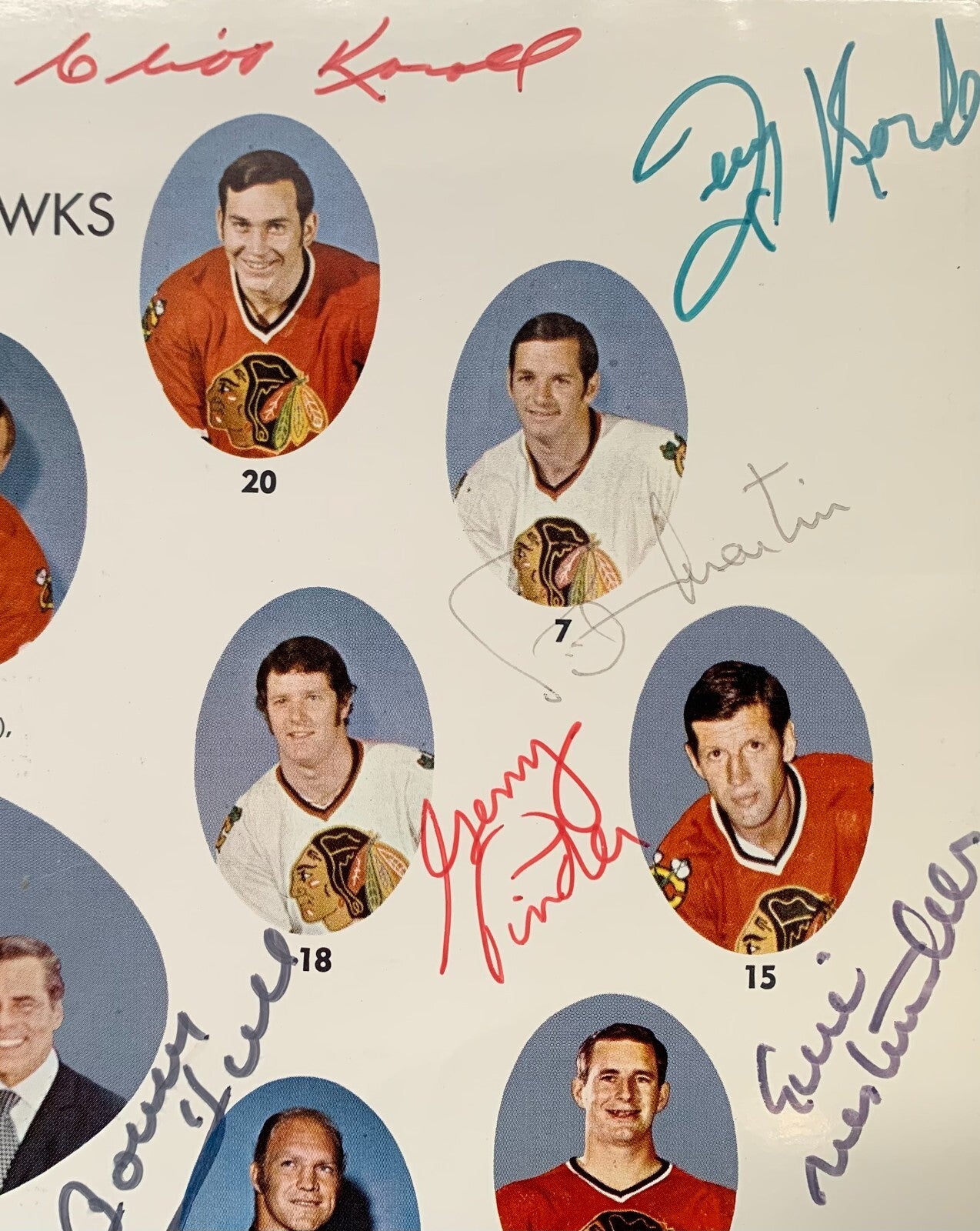 - Other signatures include: Lou Angotti, Keith Magnuson (deceased), Gerry Desjardins, Bill White, Bryan Campbell, Dan Maloney, Cliff Koroll, Jerry Korab, Gerry Pinder, E. Nesterenko, C. Maki, P Shmyr, J. Puppin, D. Hull, P. Stapleton, D. Mohns and P. Martin