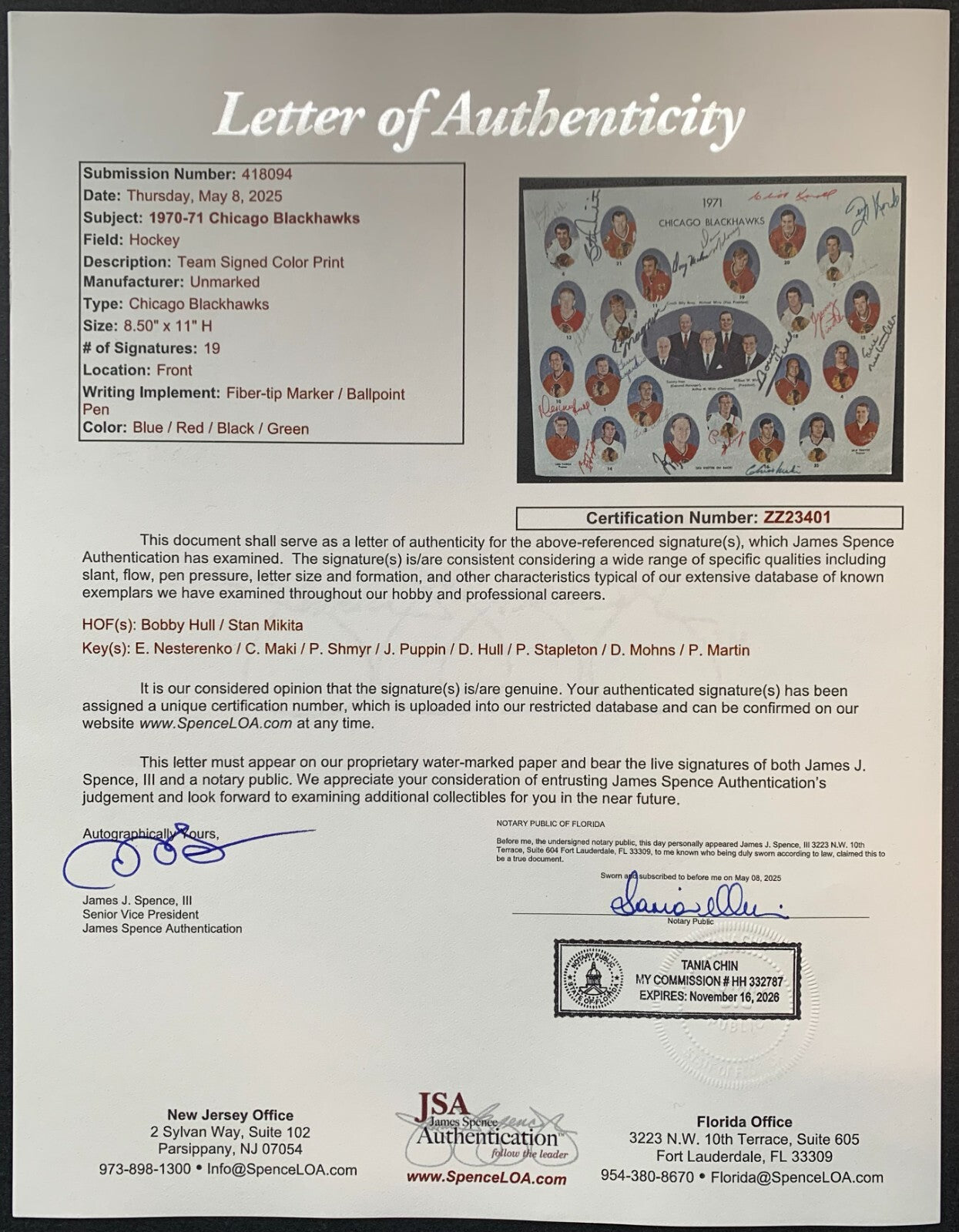 - 1970-71 Chicago Blackhawks Team Signed x19 Autgraphed Sheet JSA
