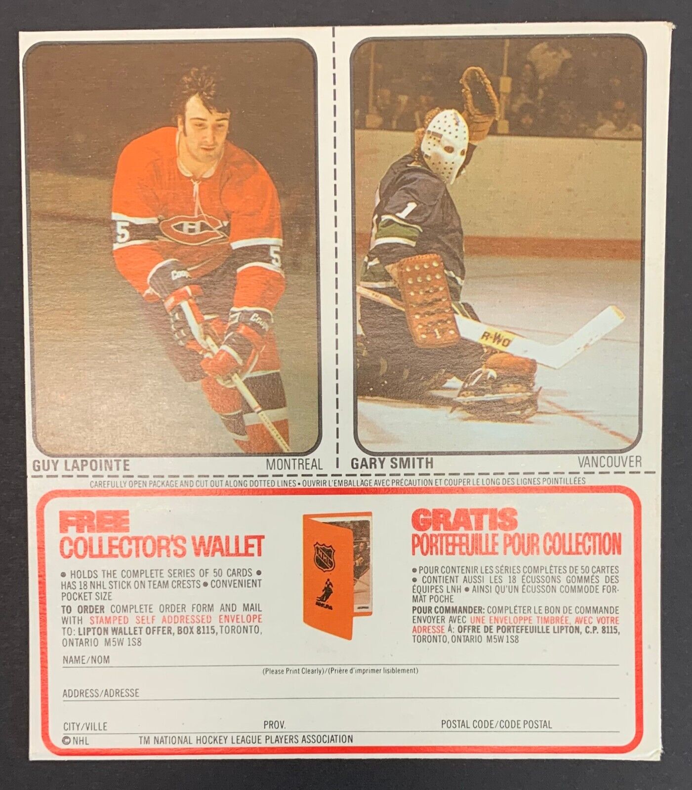 - 1974-75 Lipton Soup hockey trading cards featuring Guy Lapointe + Gary Smith