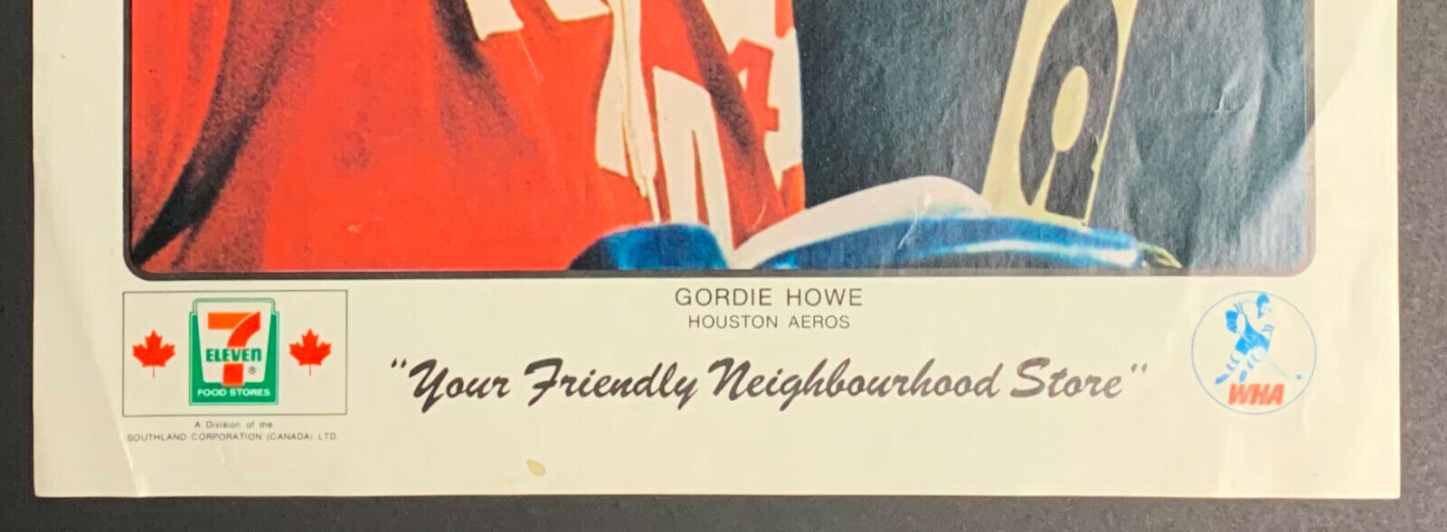 • Rare 7 Eleven Canada store promo photo of Gordie Howe while playing for WHA vs Russians in 1974 Summit Series