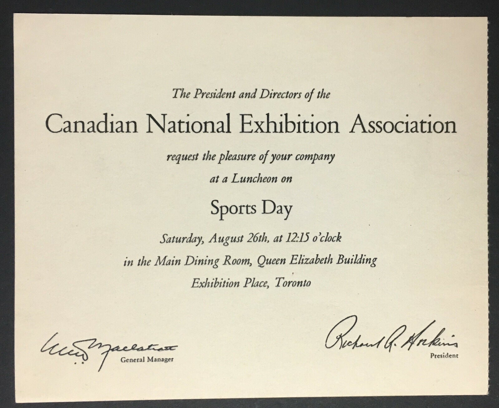 • Vintage 1978 Canadian National Exhibition Association invitation for Sports Day luncheon at The CNE Grounds