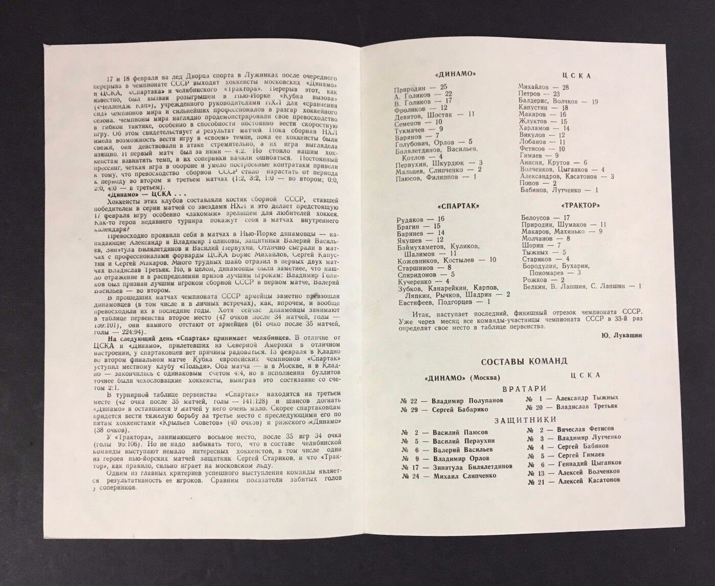 1979 Russian Hockey League Dynamo Spartak Tractor Red Army Program Vtg Tretiak