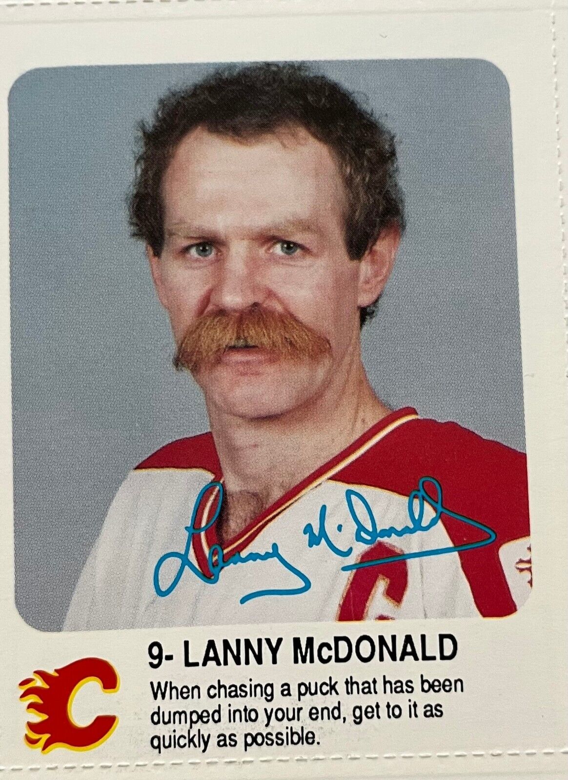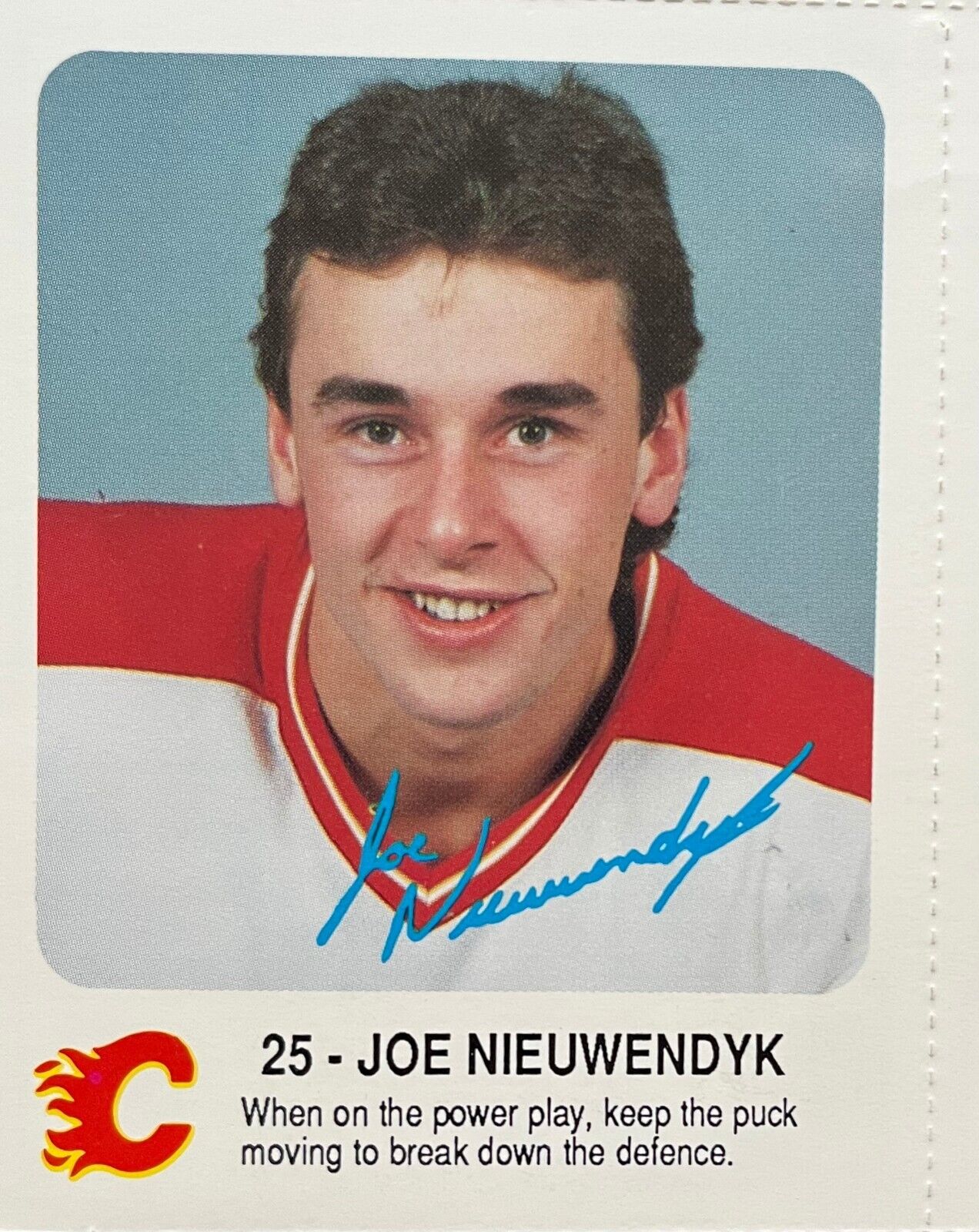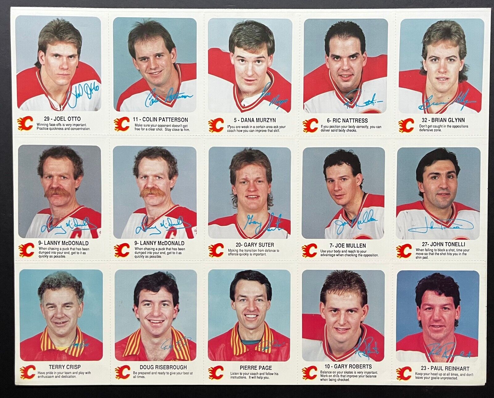 • Vintage Calgary Flames 1987-88 Red Rooster complete sheet of 30 cards with HOFer Al Macinnis, Brett Hull, Lanny McDonald, Joe Mullen