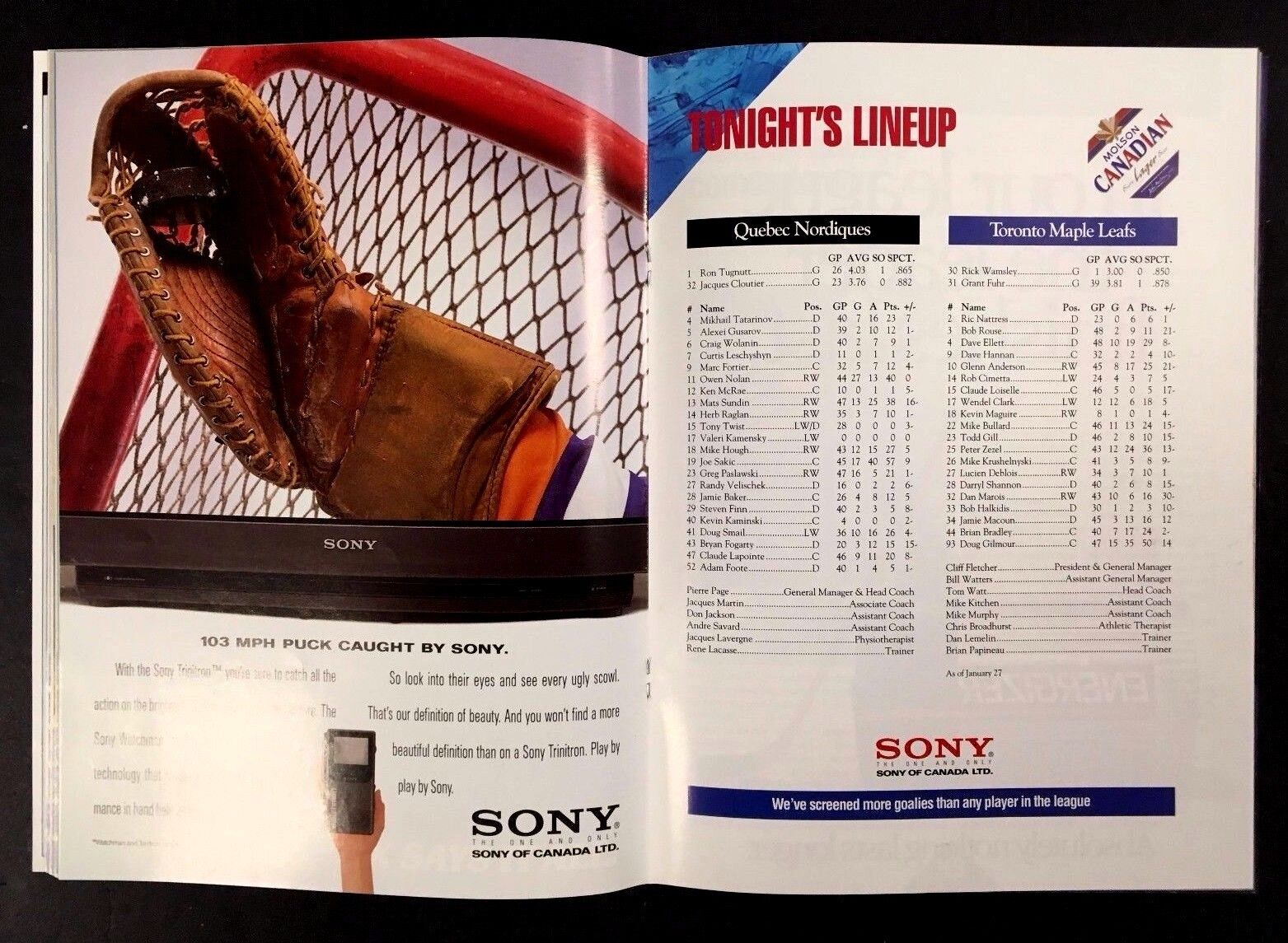 - 1991-92 Toronto Maple Leafs Season Program with Mats Sundin on cover as a Quebec Nordique Ironically he would be traded to Toronto the next season for Wendall Clark.
