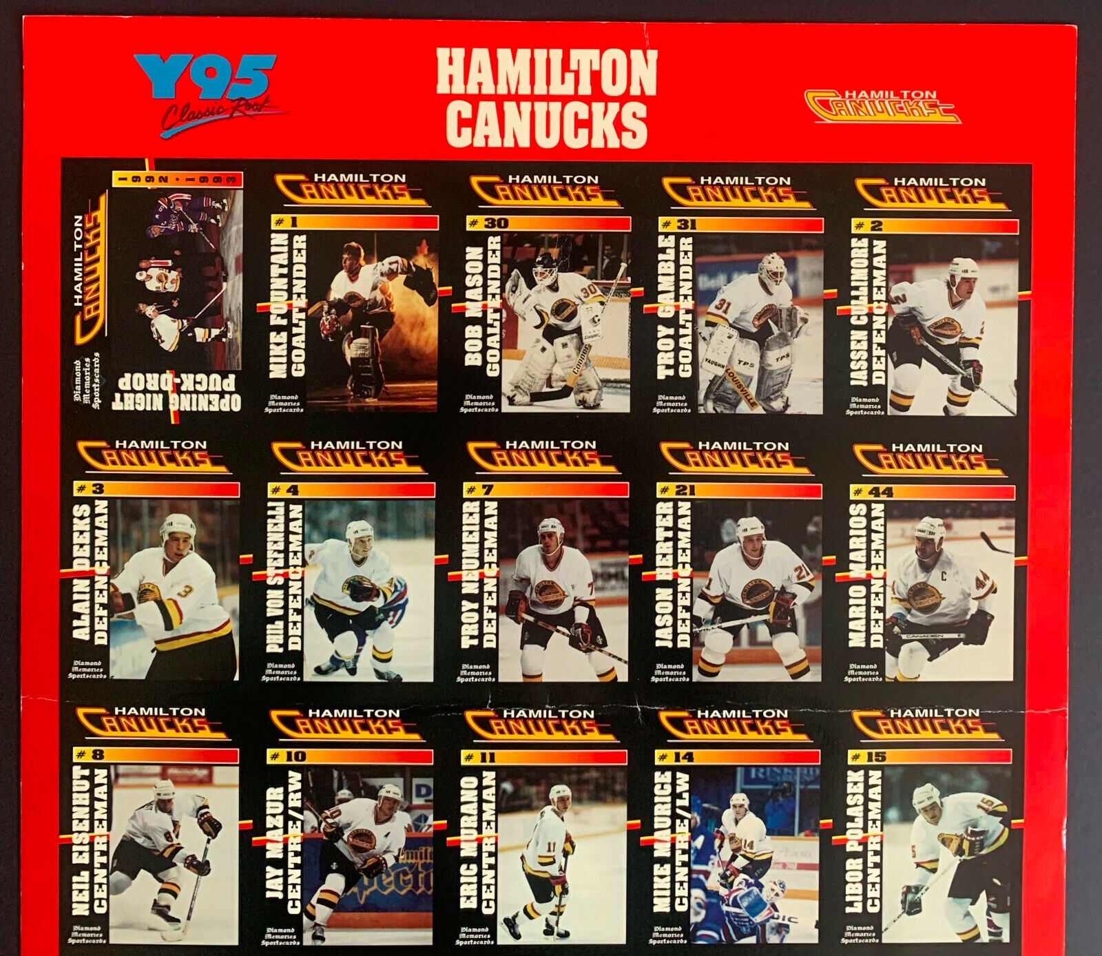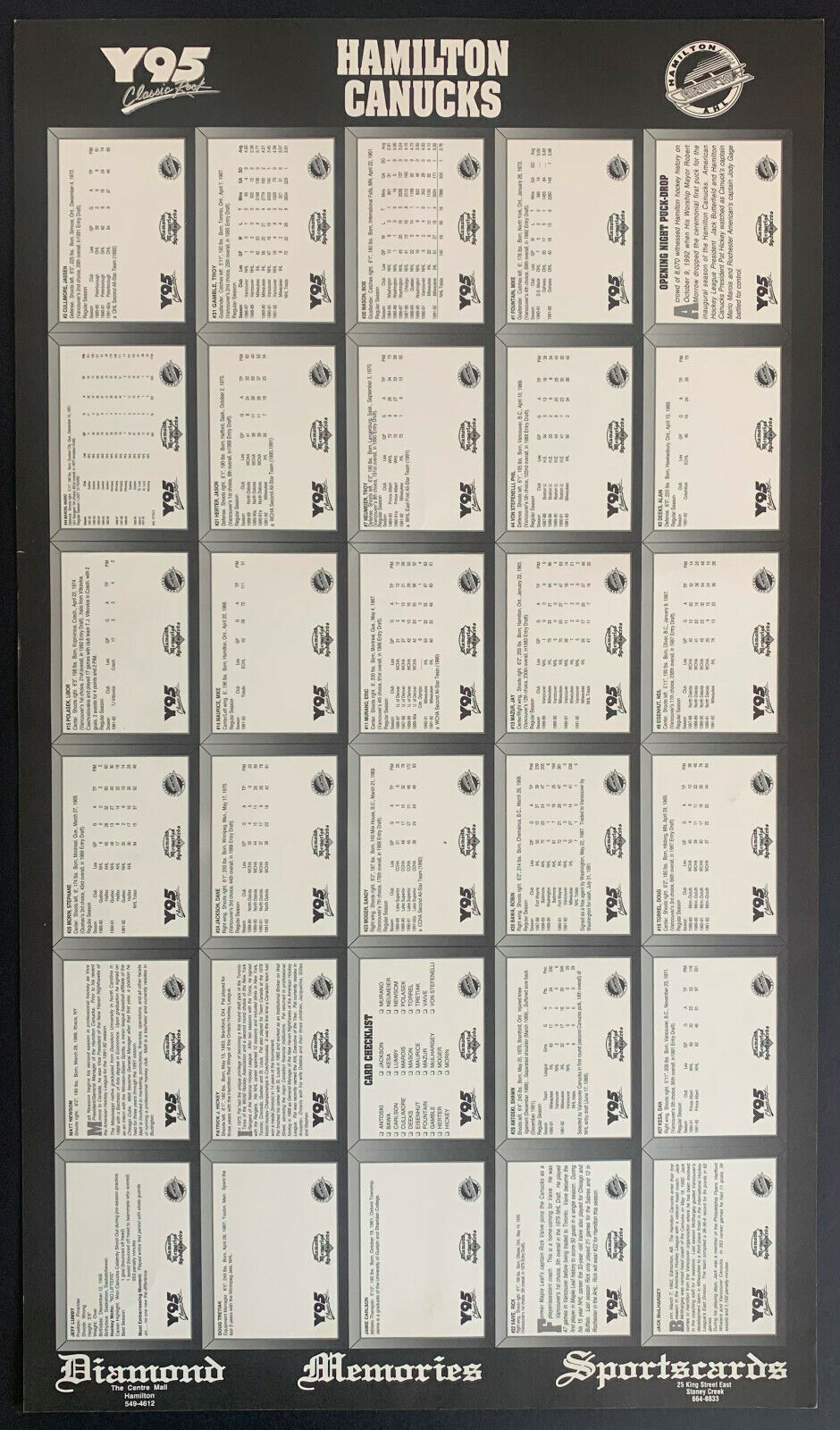 - 1992-93 Hamilton Canucks uncut player trading card sheet (American Hockey League)